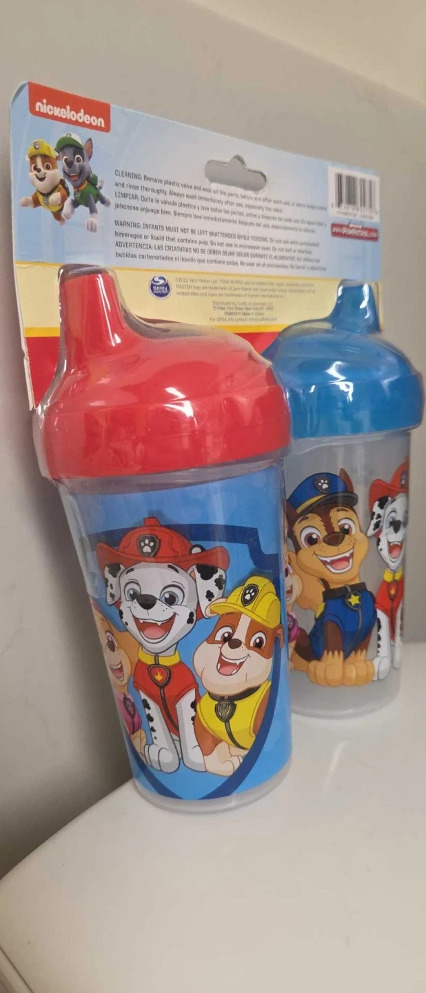 This set includes two Paw Patrol sipper cups featuring Chase, Marshall, and Skye. They're BPA-free for safe use. Perfect for little ones learning to drink independently!
