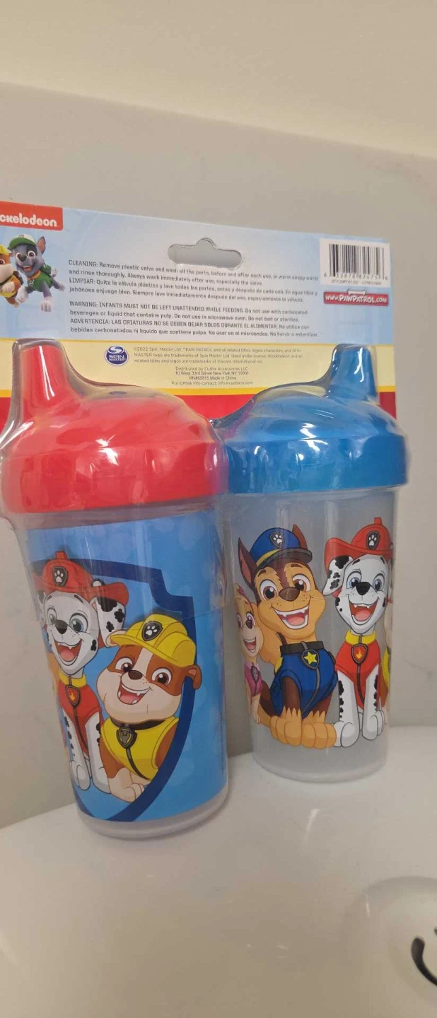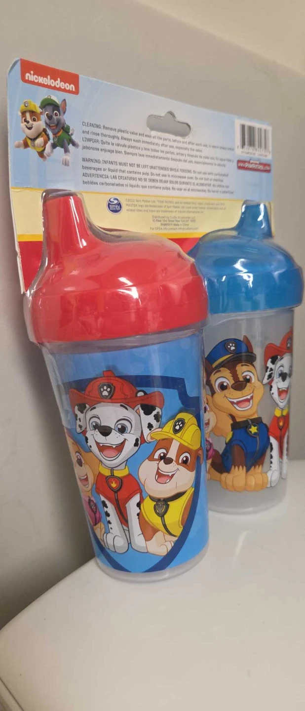 This set includes two Paw Patrol sipper cups featuring Chase, Marshall, and Skye. They're BPA-free for safe use. Perfect for little ones learning to drink independently!