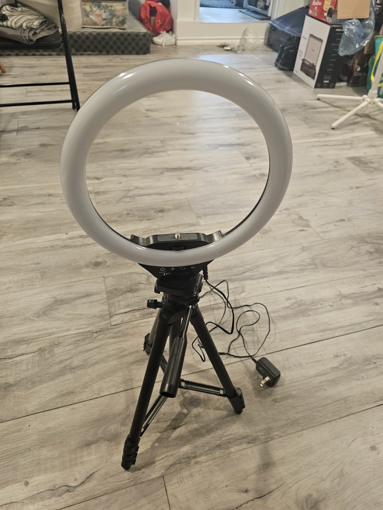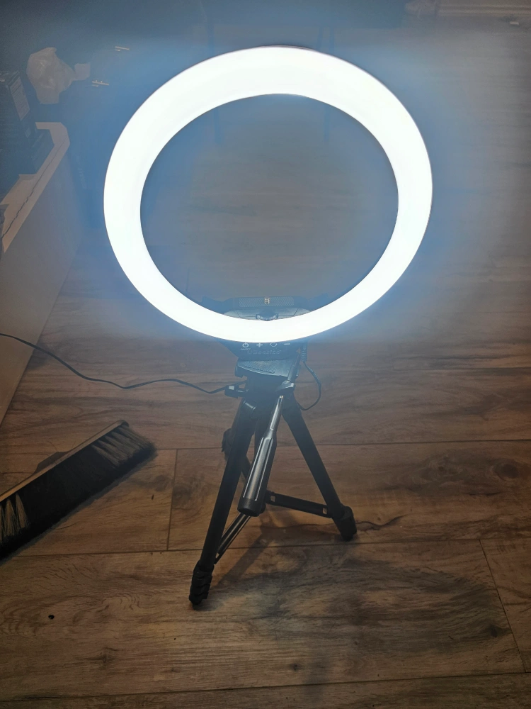Selling a ring light with a tripod stand! It's in great condition and perfect for taking photos or videos. It's lightweight and portable, so it's easy to take with you wherever you go
