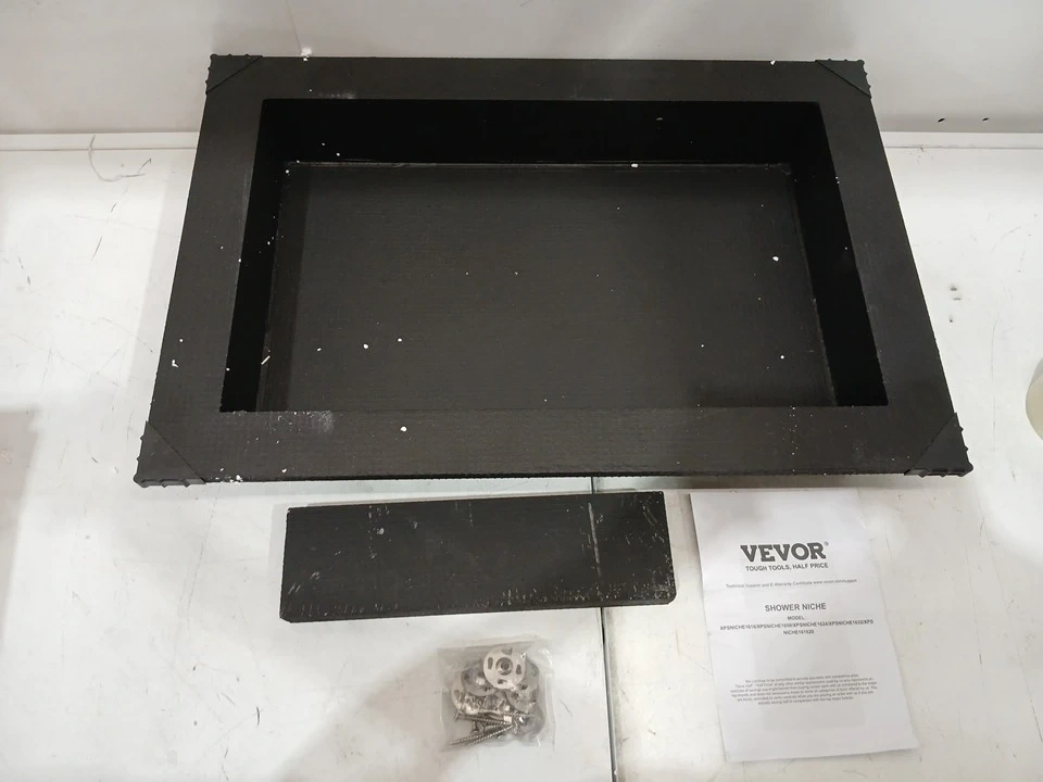 This is a VEVOR shower niche, 24 inches by 16 inches. It's made of durable material and comes with hardware for installation. This niche is great for organizing your shower supplies.