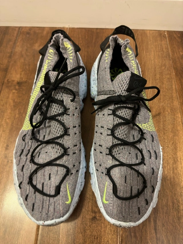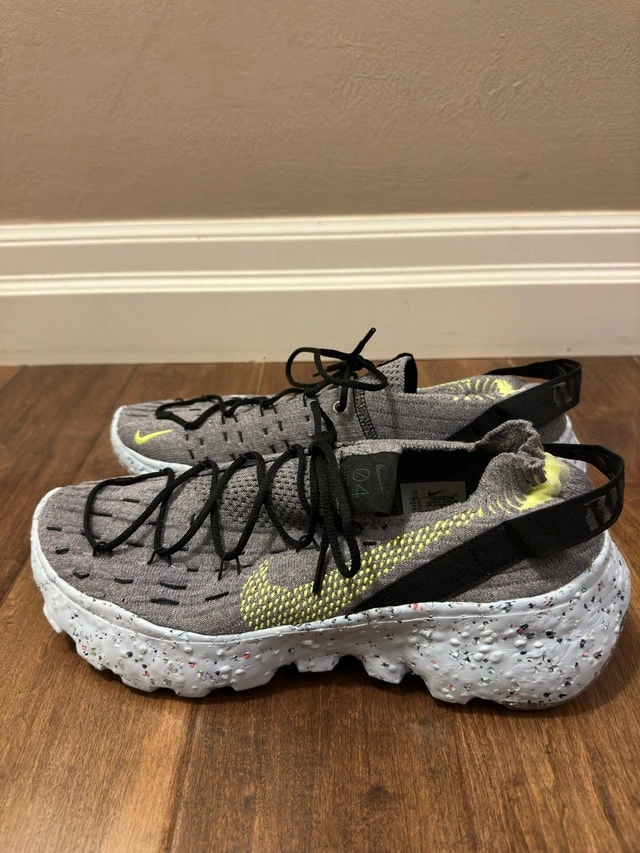 Step into sustainable style with these Nike Space Hippie 04 shoes. Crafted with recycled materials, these runners offer a unique look and eco-friendly comfort, perfect for everyday wear. These have been worn. Key features: * Eco-friendly construction using recycled materials * Unique Crater Foam midsole for cushioning * Stylish and futuristic design Looking to sell for $110 CAD. I'm cleaning out my closet and these need a new home. If the ad's up, they're available!