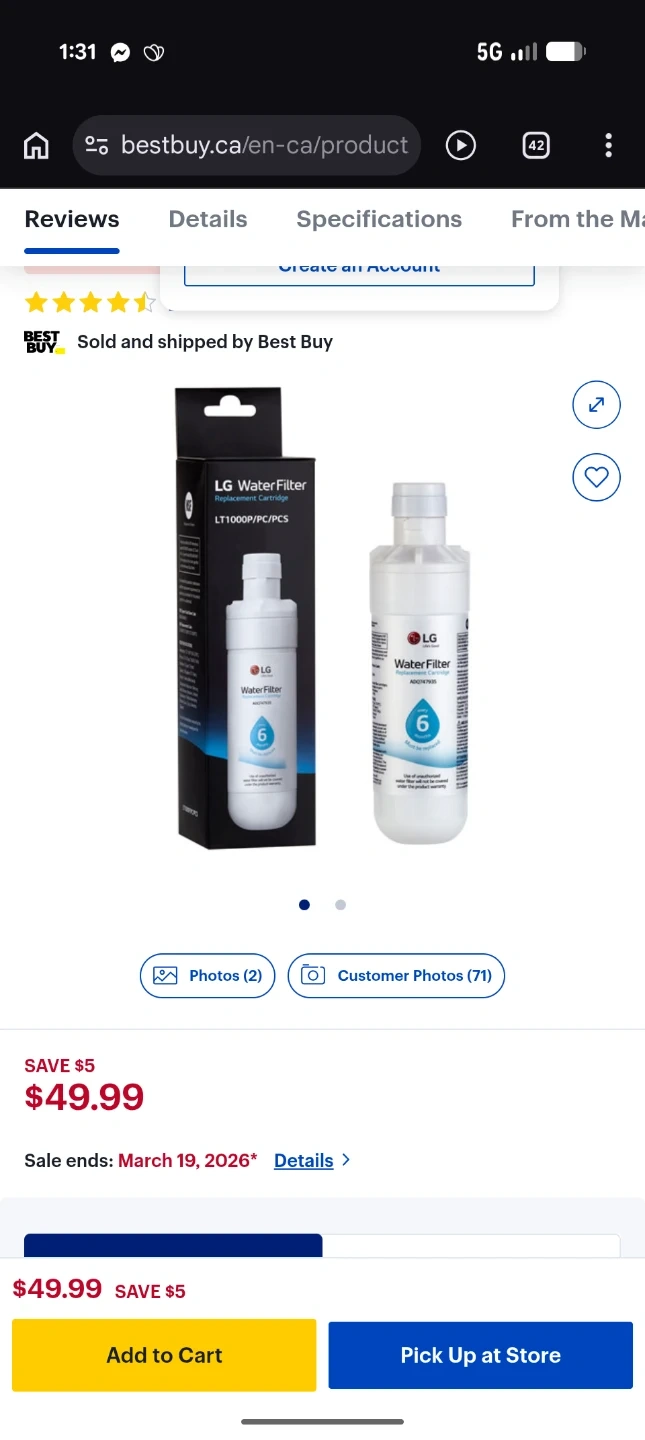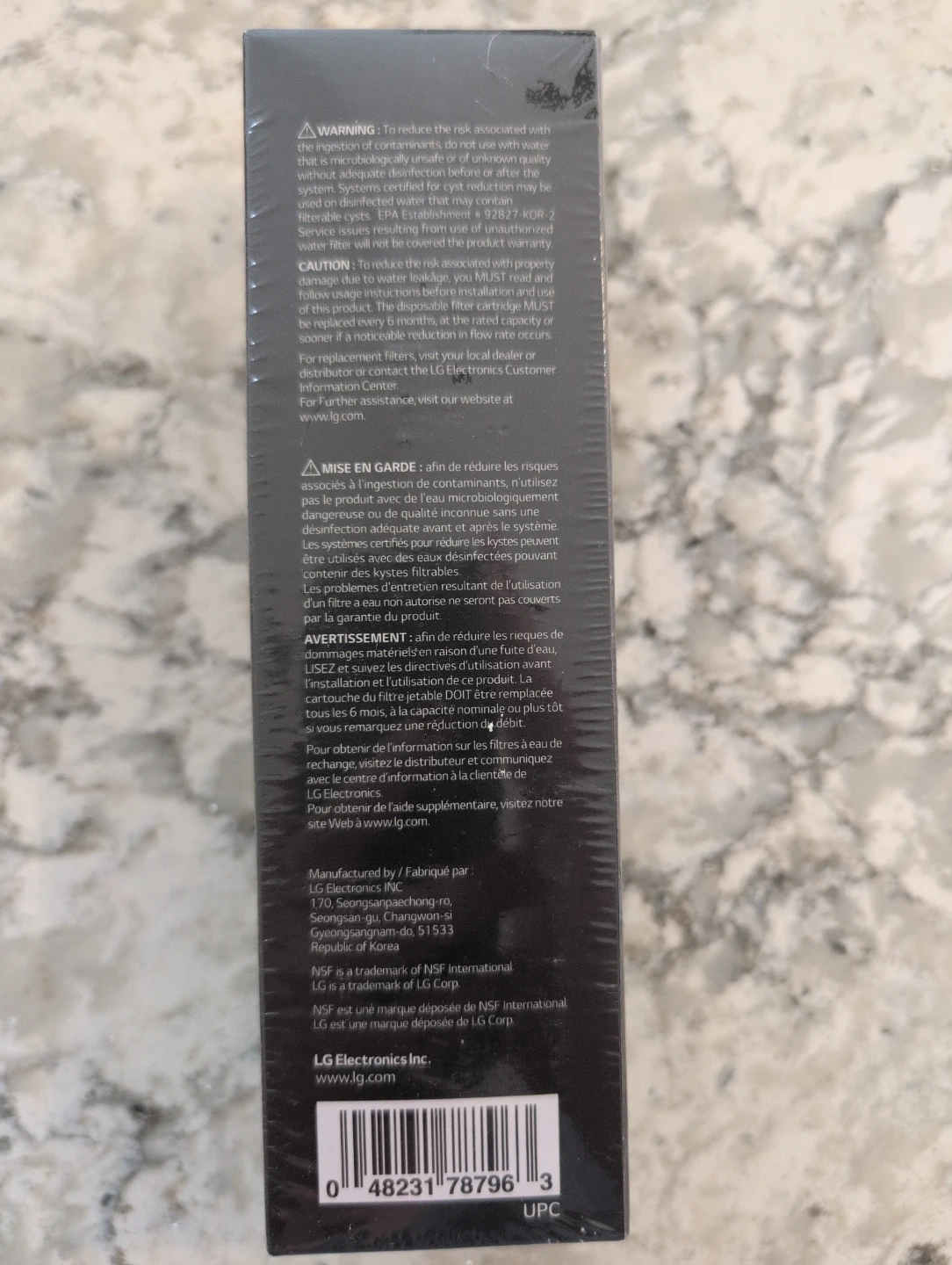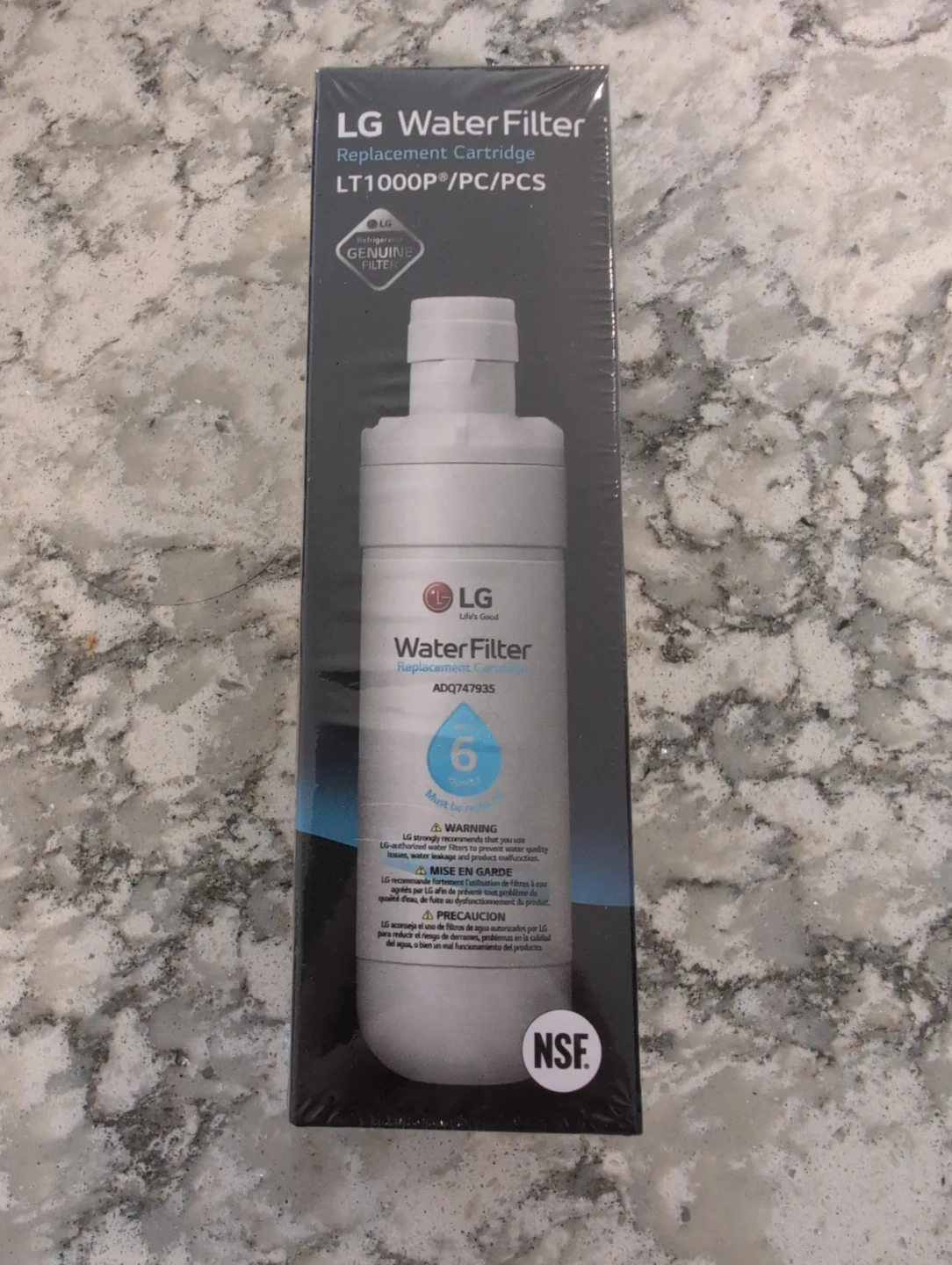Brand new, LG LT1000PC/PCS water filter replacement cartridge. It's NSF certified for chlorine taste and odor reduction, as well as for reducing lead and mercury. The filter is designed to last for 6 months or 757 litres.