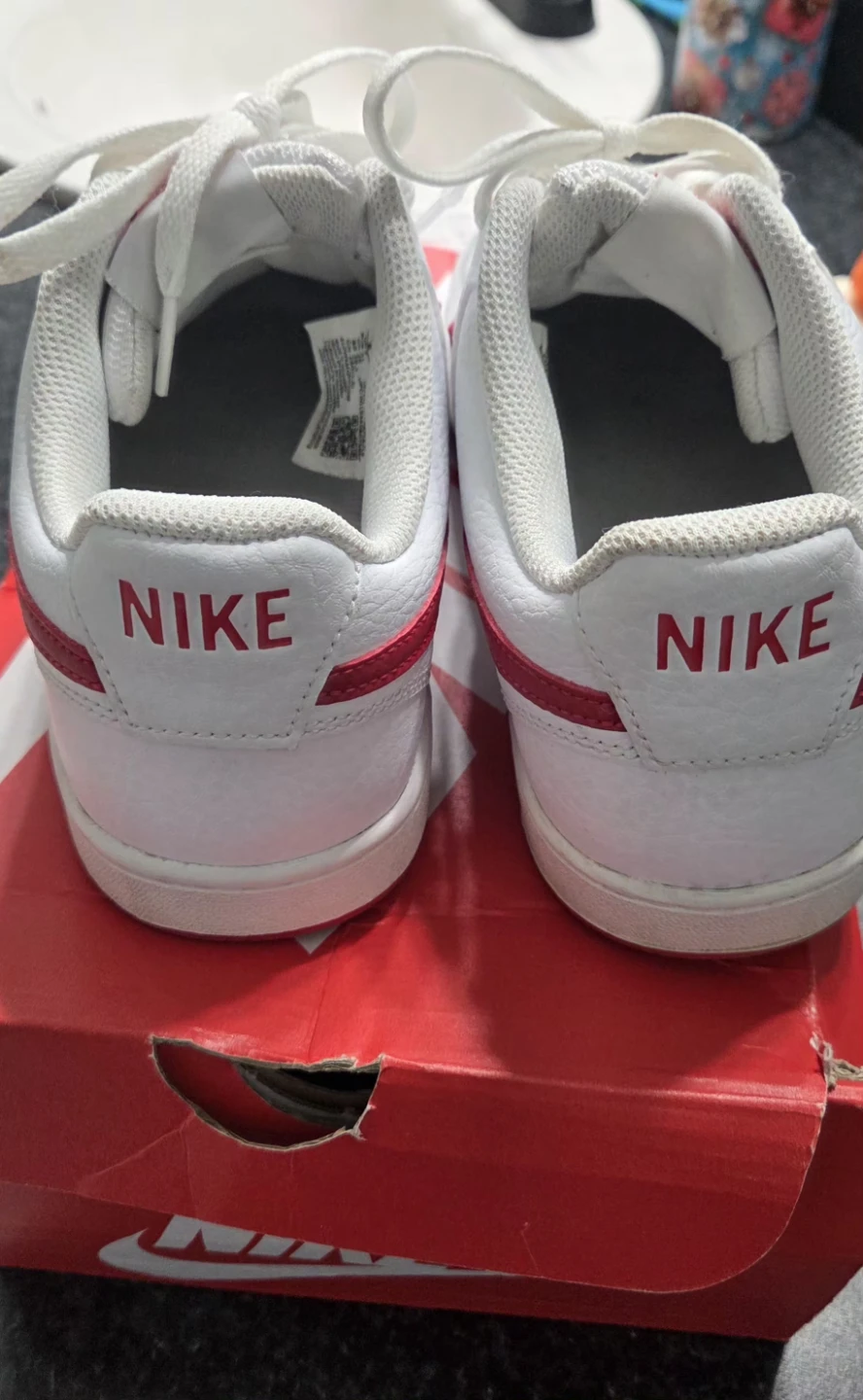 These Nike Court Vision Lo sneakers come in white with red accents. They feature a classic low-top silhouette perfect for everyday wear. Made in Indonesia.