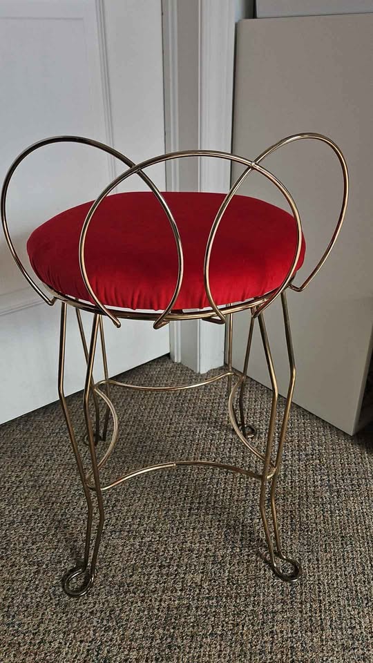 Vintage 1960s boudoir stool red velvet ♥️ 60cm tall