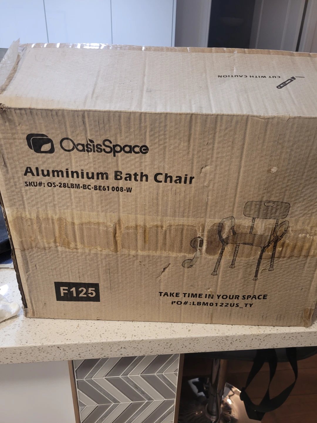This is an OasisSpace Aluminium Bath Chair. It's made of aluminium for durability. This bath chair offers support and stability in the shower.