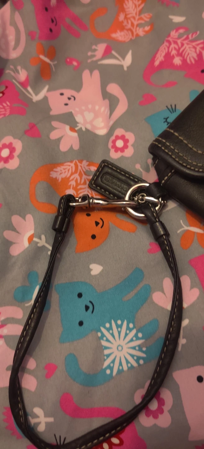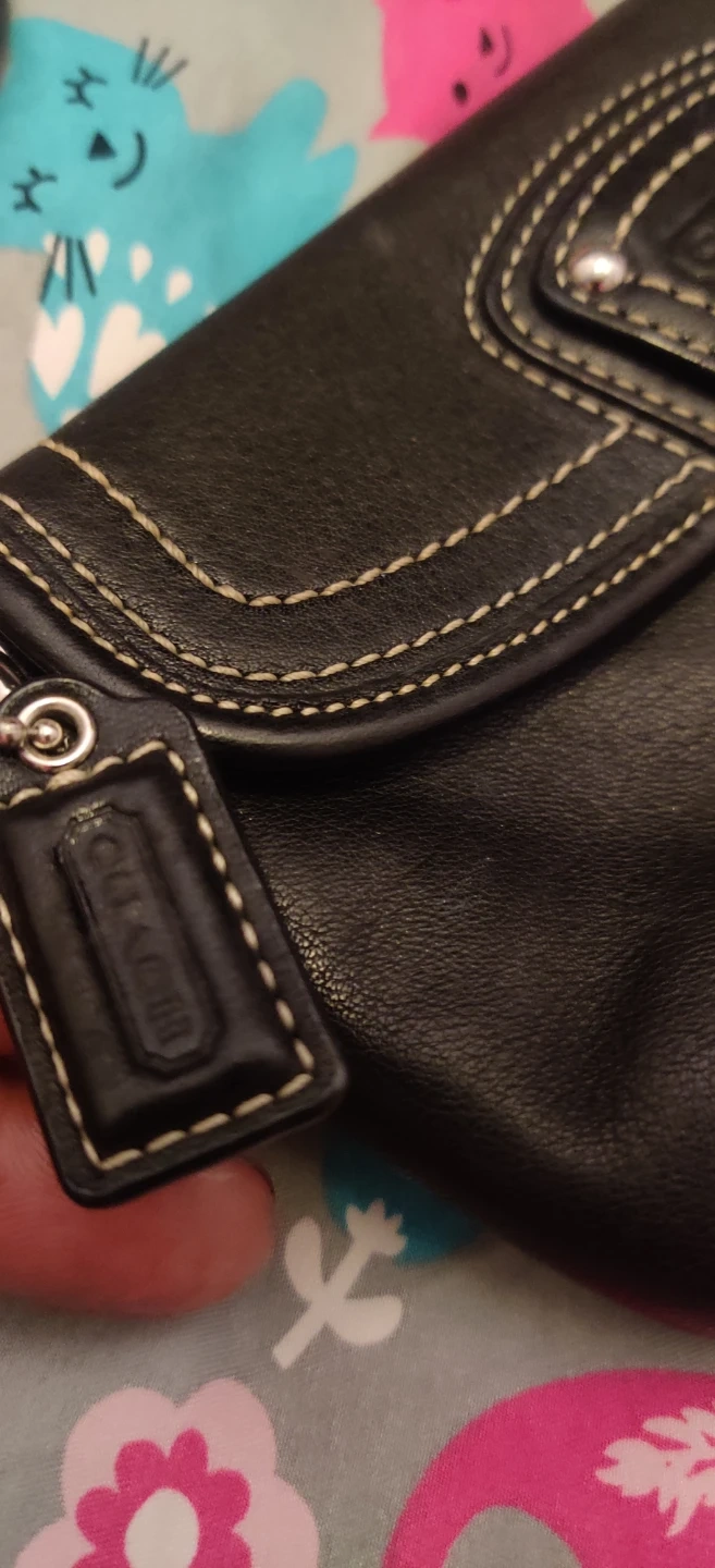 This is a black leather Coach wristlet. It has a turn-lock closure and is in good condition. Will not fot your phone. Price is firm