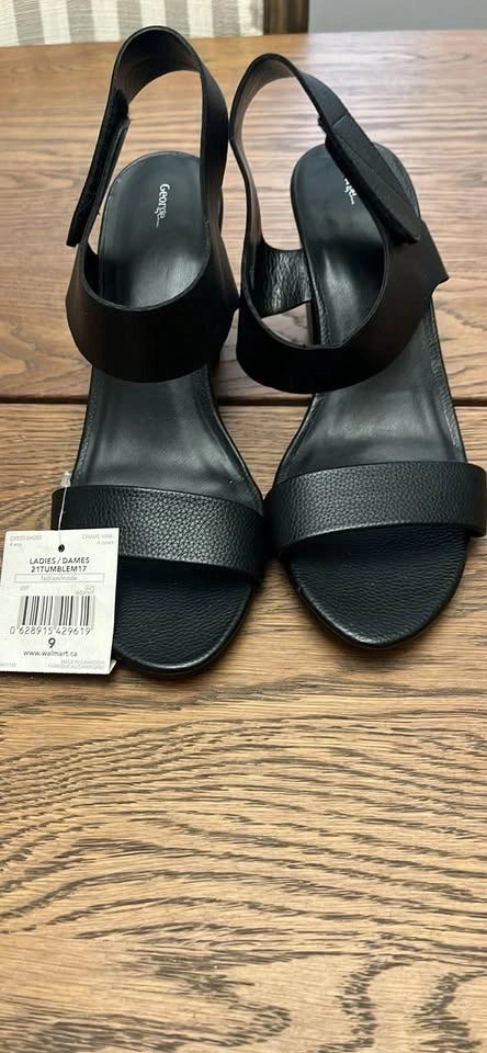 New George Black Block Heel Sandals Size 9 with Tags