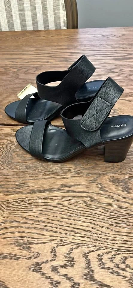New George Black Block Heel Sandals Size 9 with Tags