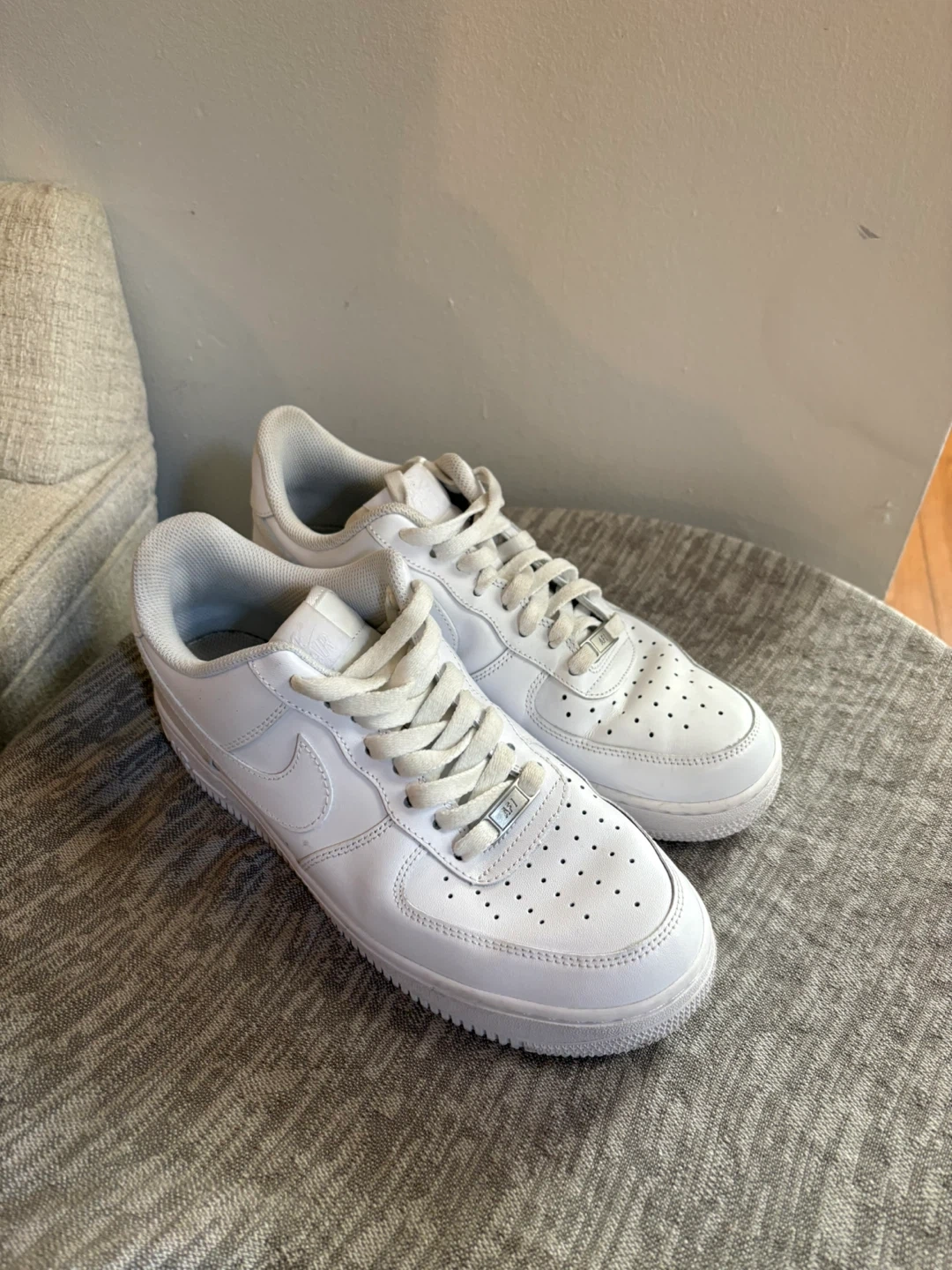 Selling a pair of Nike Air Force 1 Low sneakers in white. These classic shoes are in great condition and ready for a new owner! They are a versatile addition to any wardrobe and can be dressed up or down
