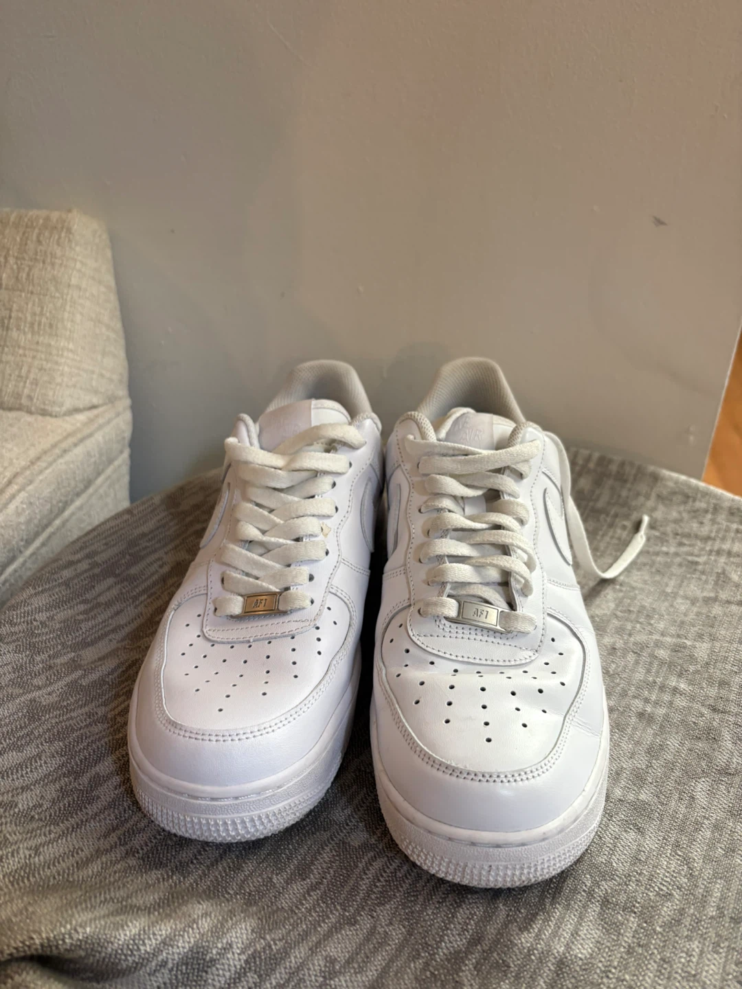 Selling a pair of Nike Air Force 1 Low sneakers in white. These classic shoes are in great condition and ready for a new owner! They are a versatile addition to any wardrobe and can be dressed up or down