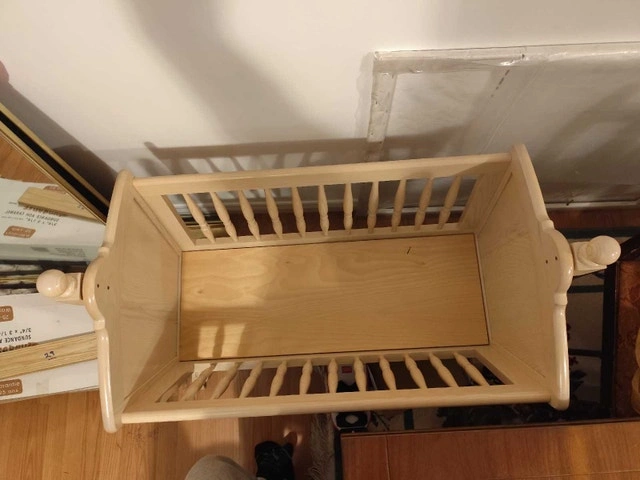 Hand made cradle solid oak. Measures 21" x 37" inches at the top. 34" inches high. 12" x 32" inside bottom. $300 or best offer. Located near Mavis and Derry road Mississauga.
