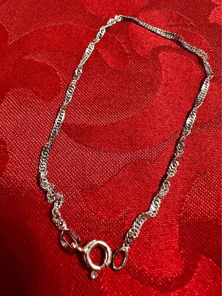 Sterling silver 925 twisted chain design. Measures about 7.2 inches long with a spring ring clasp. Never worn. Pickup only in Coquitlam, Westwood Plateau (behind IGA).