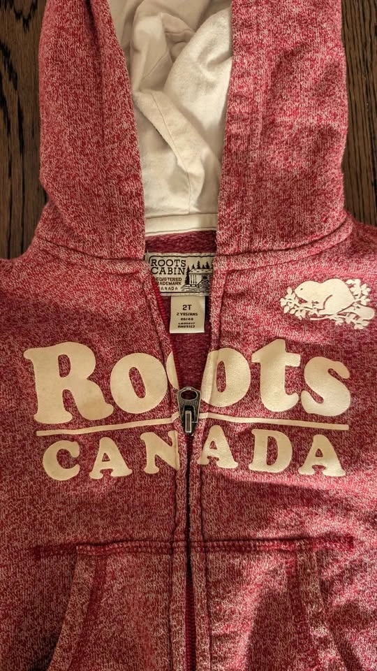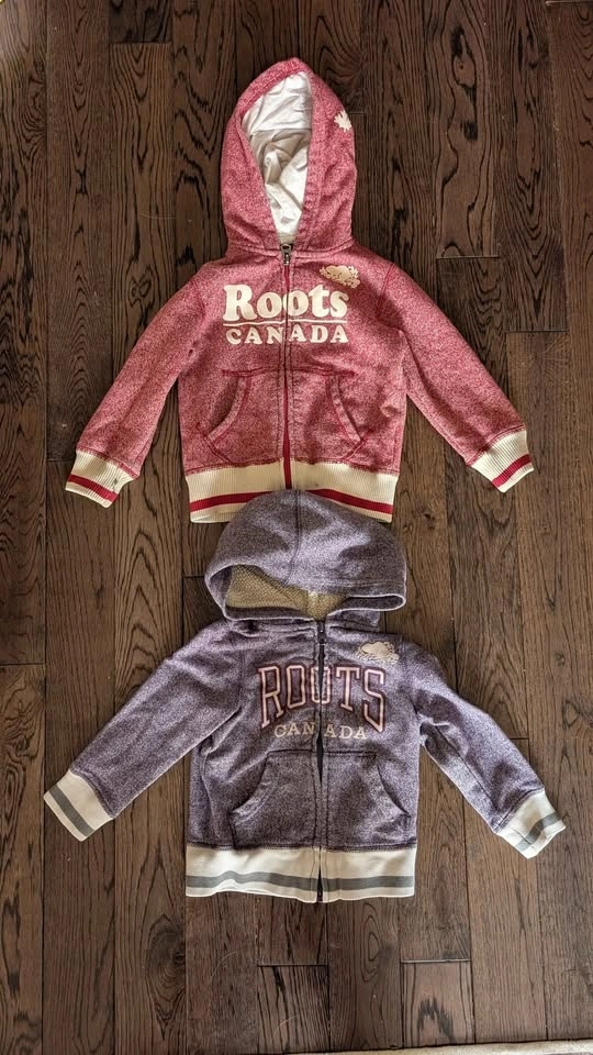 Selling two Roots hooded zip up sweatshirts together for $15. (Or $10 each). Size 2T. Red and purple colours. Gender neutral colors. Pickup near Greenwood and Danforth area