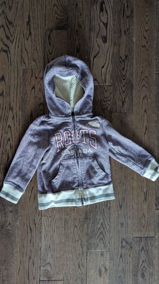 Selling two Roots hooded zip up sweatshirts together for $15. (Or $10 each). Size 2T. Red and purple colours. Gender neutral colors. Pickup near Greenwood and Danforth area