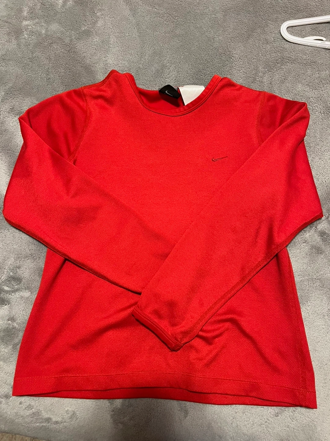 Selling a red Nike Dri-FIT long-sleeve shirt in size XS. It's in great shape and ready for a new owner! The Dri-FIT material is perfect for workouts or everyday wear