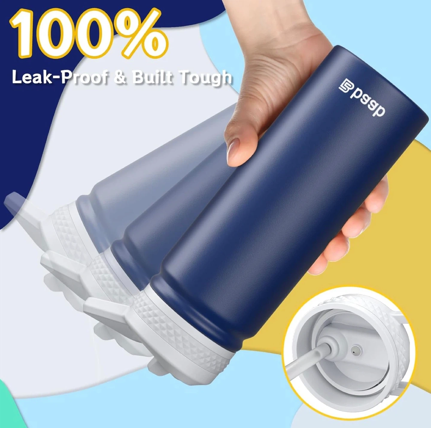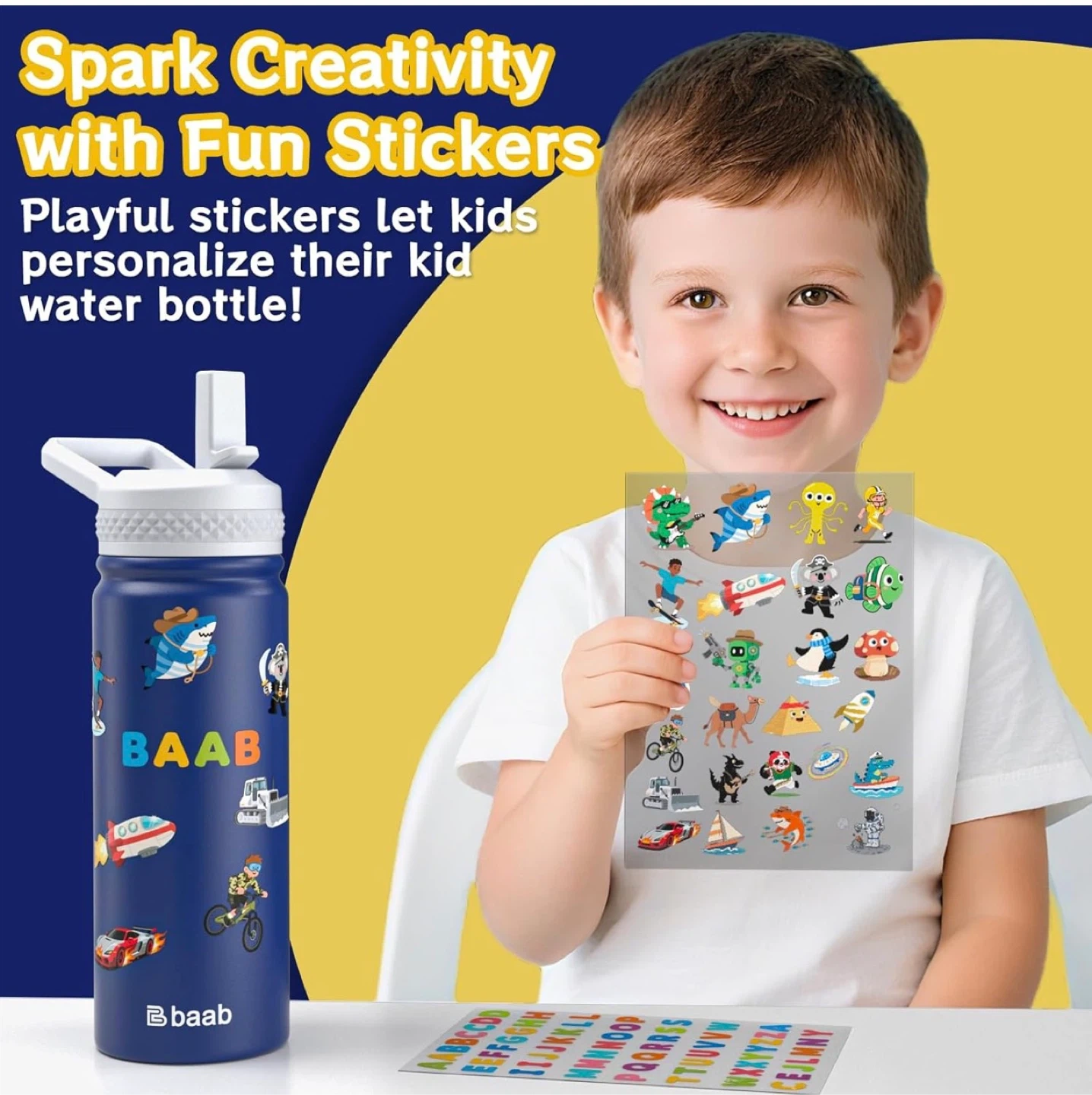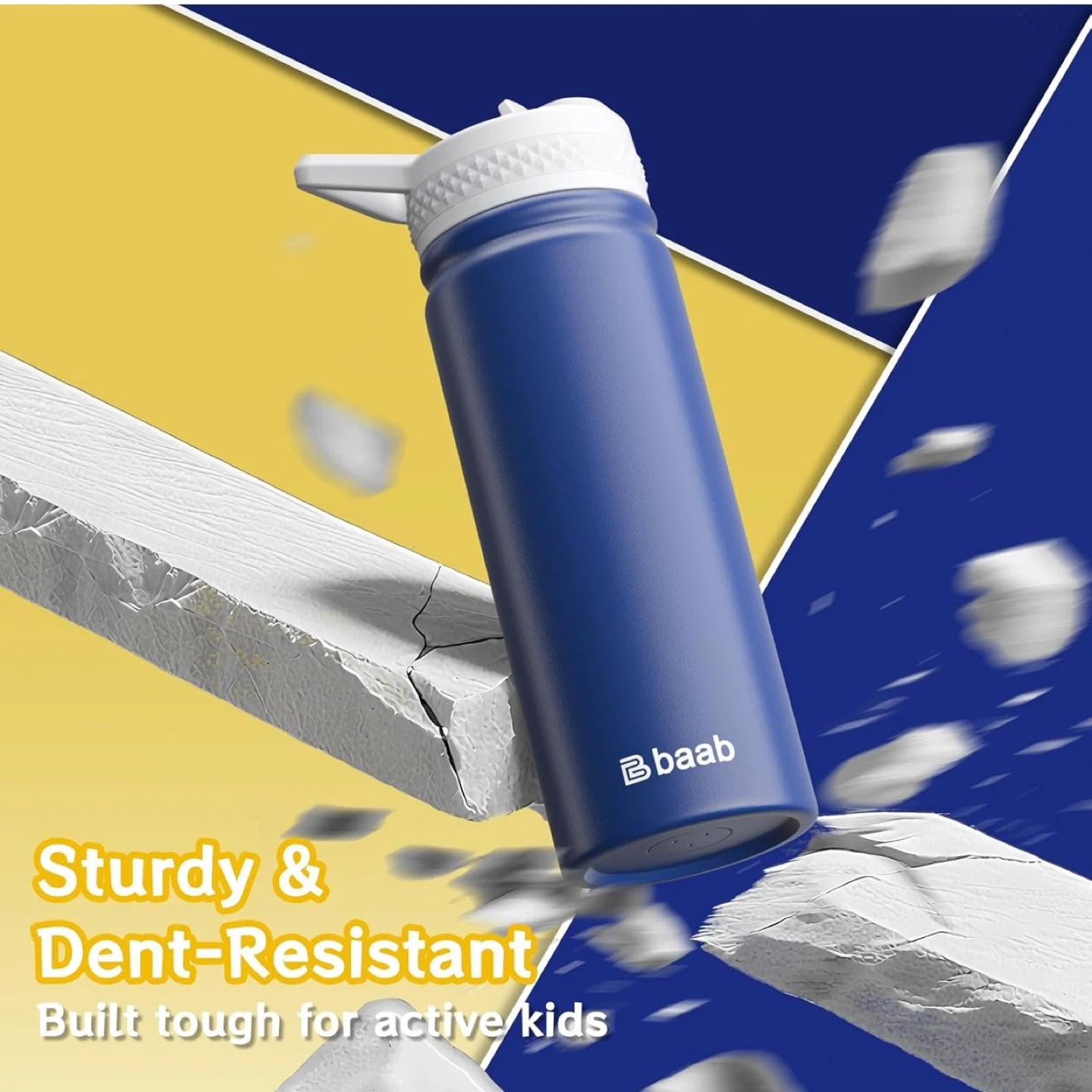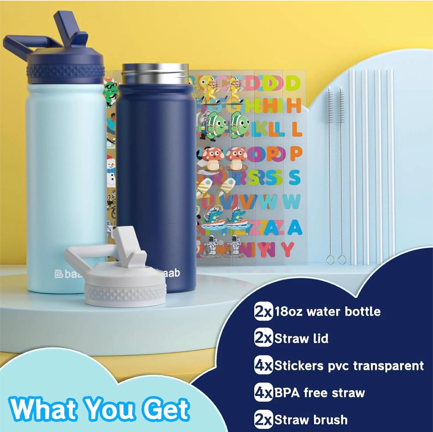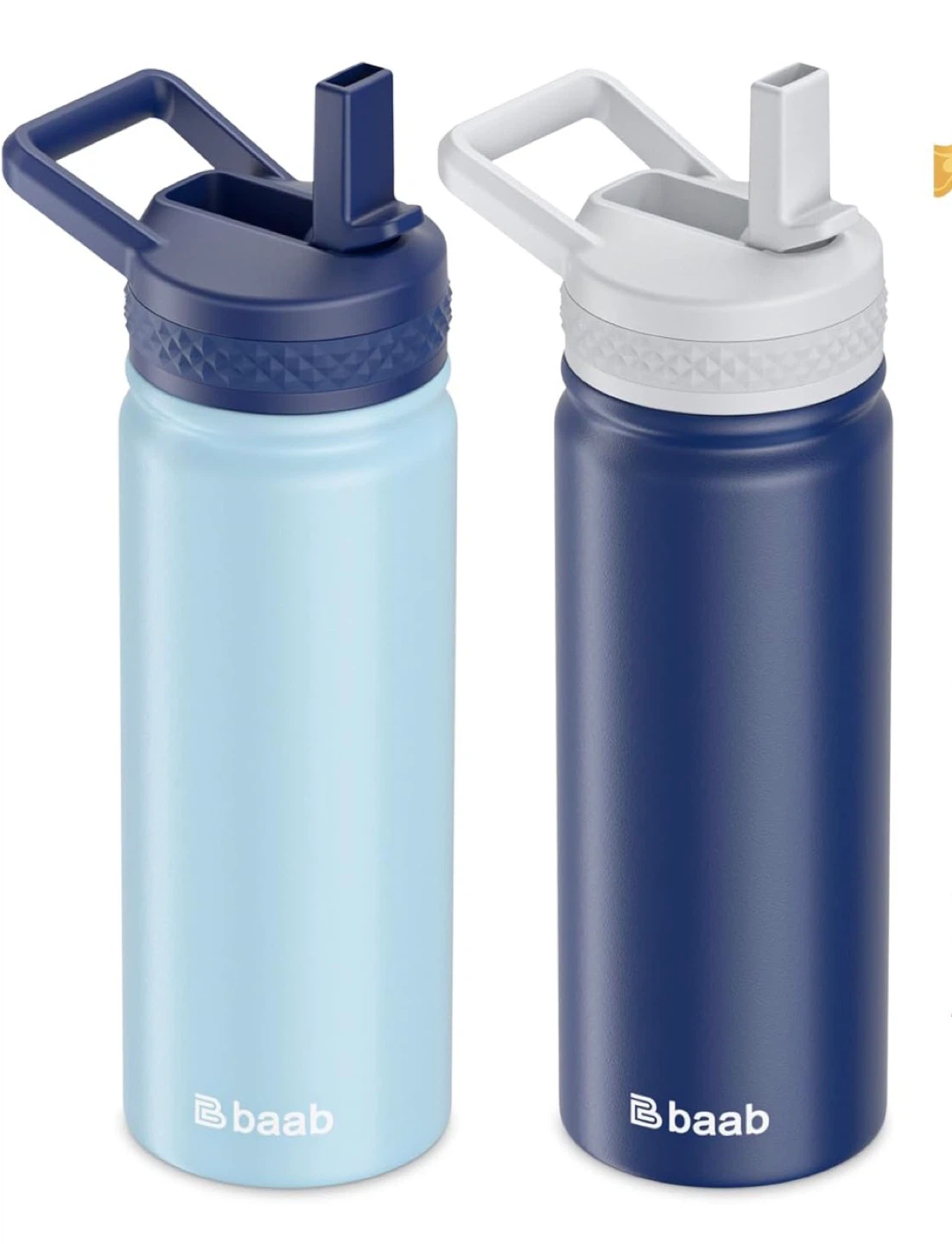18oz Kids Water Bottle, Insulated Water Bottle with Straw & Stickers, 18/8 Stainless Steel Vacuum Leakproof Kids Water Straw Cup for School, Gift for Boy Girl (Navy Blue+Light Blue, 2 Pack)