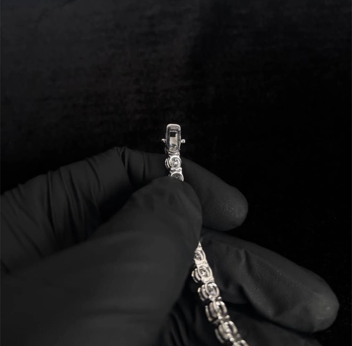 Fully iced 5mm tennis chain featuring precision-cut D Color VVS1 moissanite stones for maximum brilliance and fire.