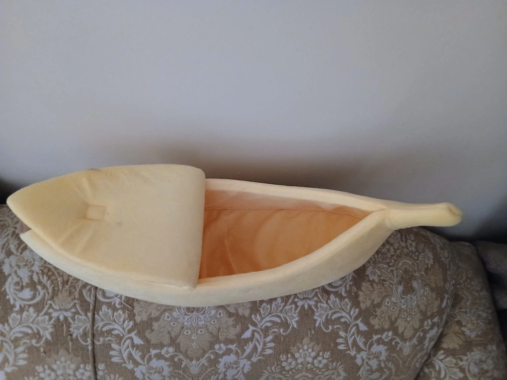 This cute banana-shaped bed is super soft and cozy for your feline friend. It's a fun and comfy spot for them to nap or play. The bed is made from plush material and has an opening for easy access.