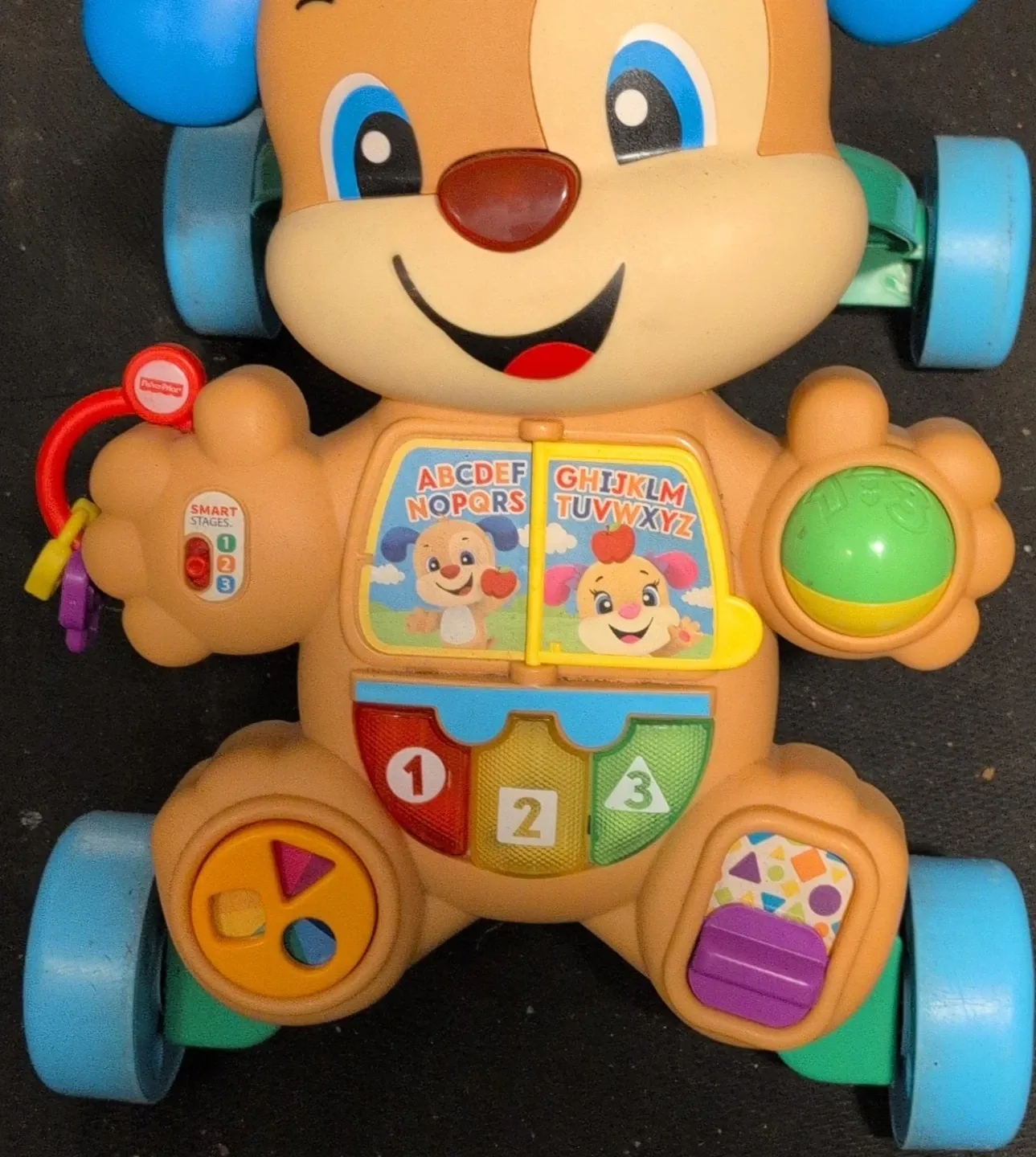 I'm selling a Fisher-Price Laugh & Learn Learn With Me Walker! It's in great shape and ready for a new little one to enjoy. This interactive walker helps your baby learn letters, numbers, and shapes while they develop their motor skills. It's perfect for babies who are starting to pull themselves up and take their first steps