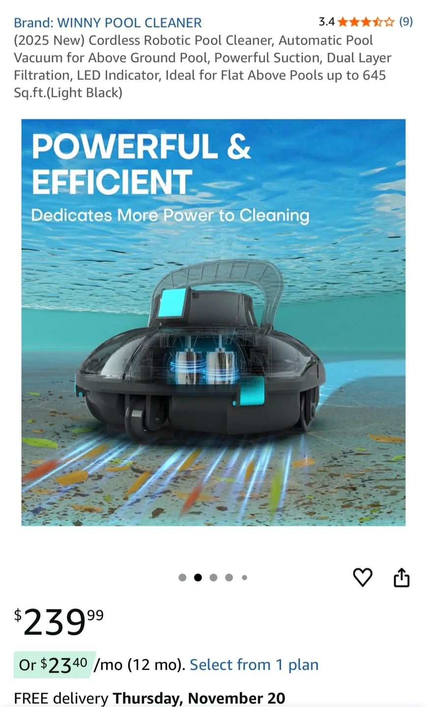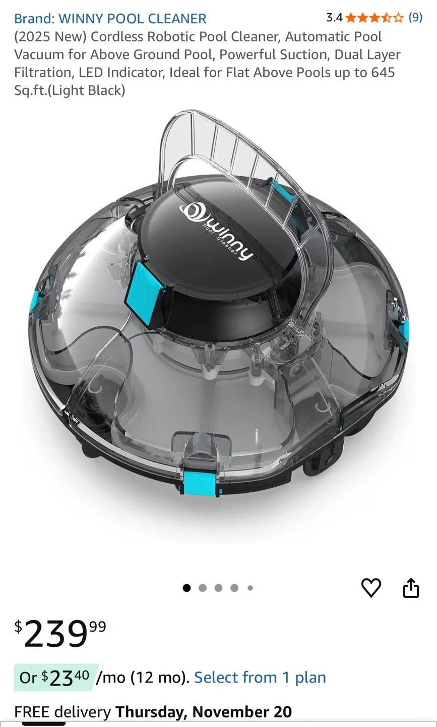 Selling a WINNY cordless robotic pool cleaner in light black. It's practically brand new!