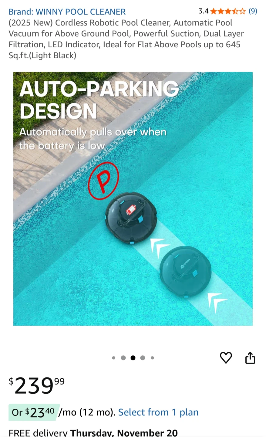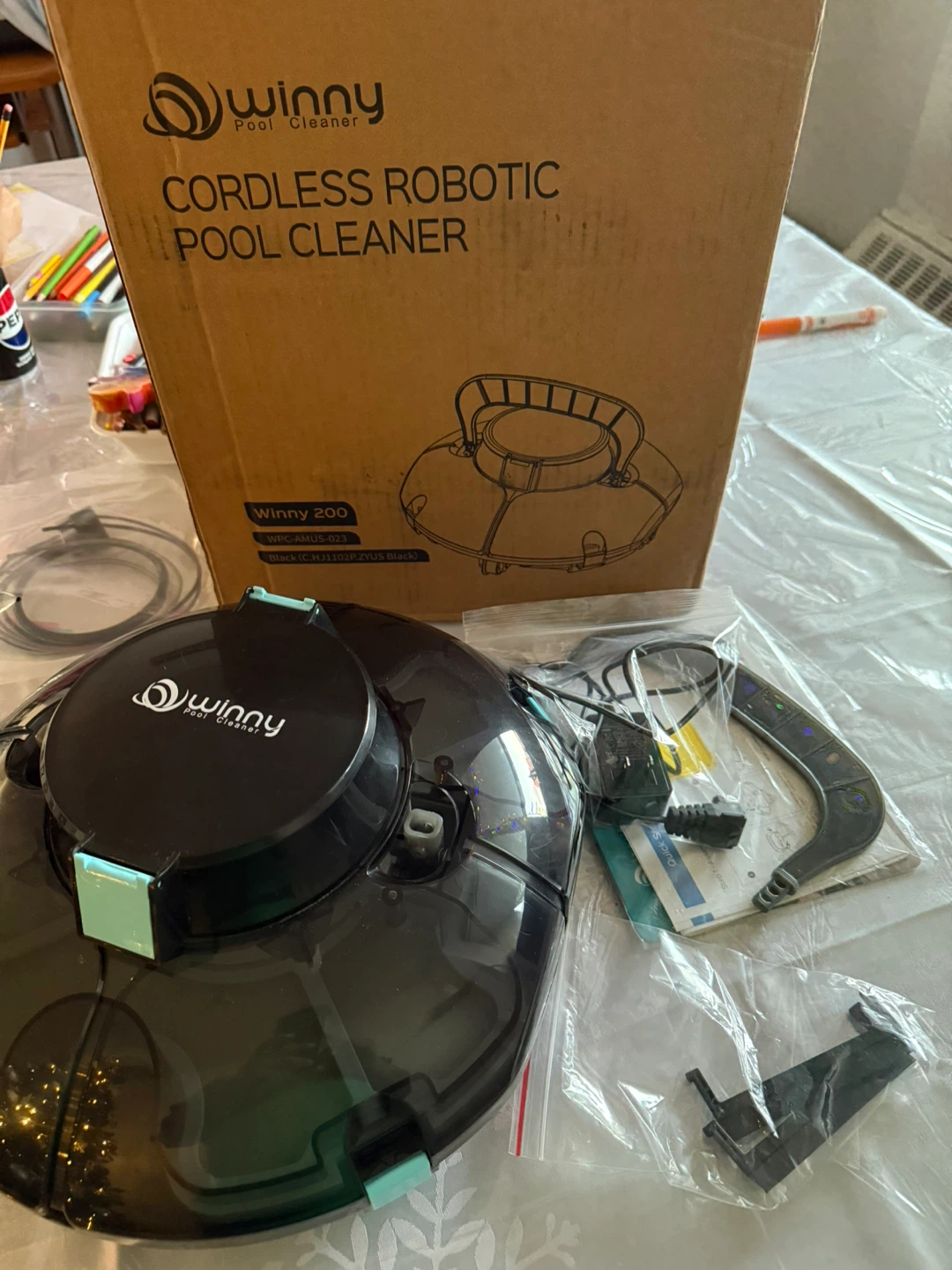 Selling a WINNY cordless robotic pool cleaner in light black. It's practically brand new!