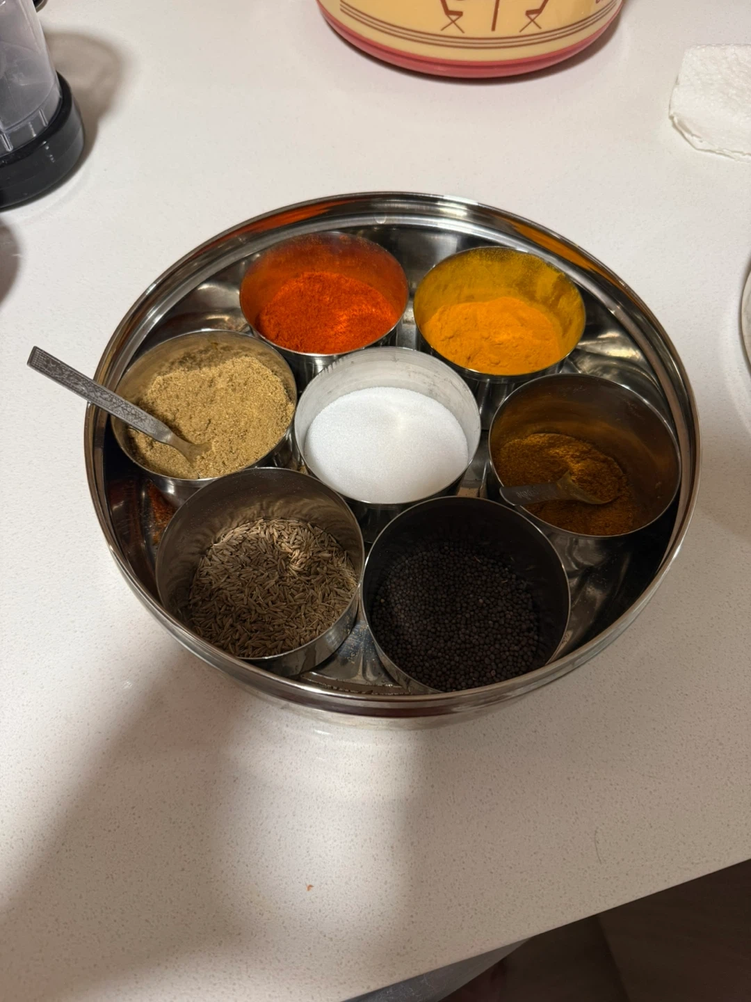 This stainless steel spice box comes with seven small bowls and a spoon, perfect for organizing your favourite spices. The compact design makes it easy to store and use in any kitchen.