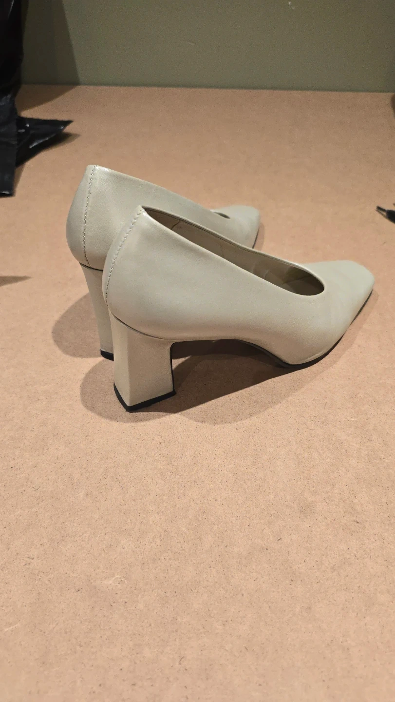 Vintage Nine West Women's Beige Leather Heels - Size 5.5M