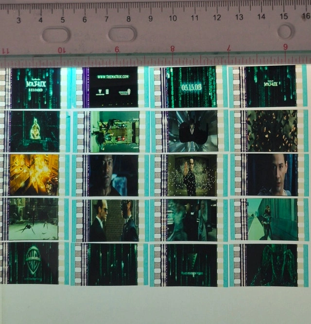 Original 35mm film cells from the theatrical trailer for THE MATRIX RELOADED. This is a bundle of various scenes. Price is $40. Ask about our other film choices.