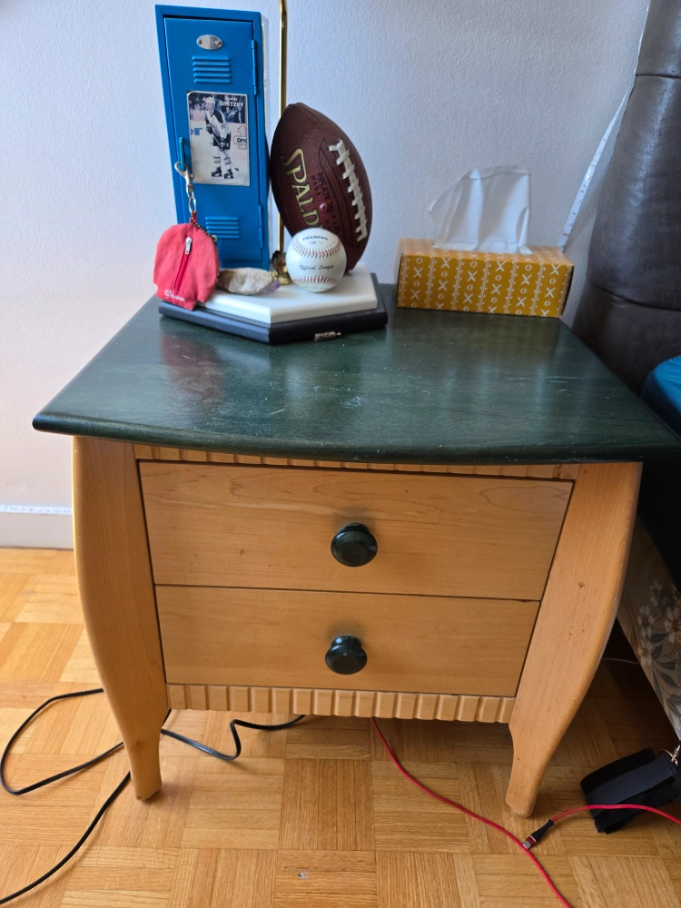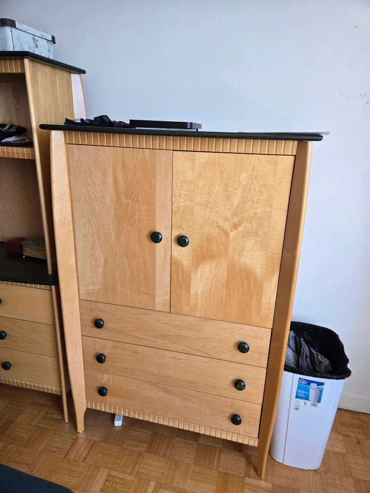 Selling a wooden dresser with multiple drawers! It's in good condition and offers lots of storage space. Perfect for organizing your clothes and other items.
