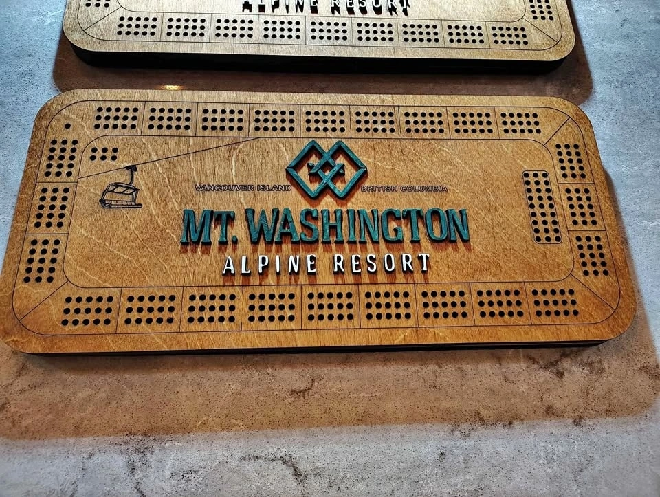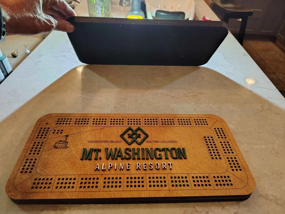 Very limited edition custom crib board featuring Mount Washington Alpine Resort on Vancouver Island. I made these to celebrate the upcoming holiday season and hopefully a great ski season. Get them while you can because once they are gone, they are gone.