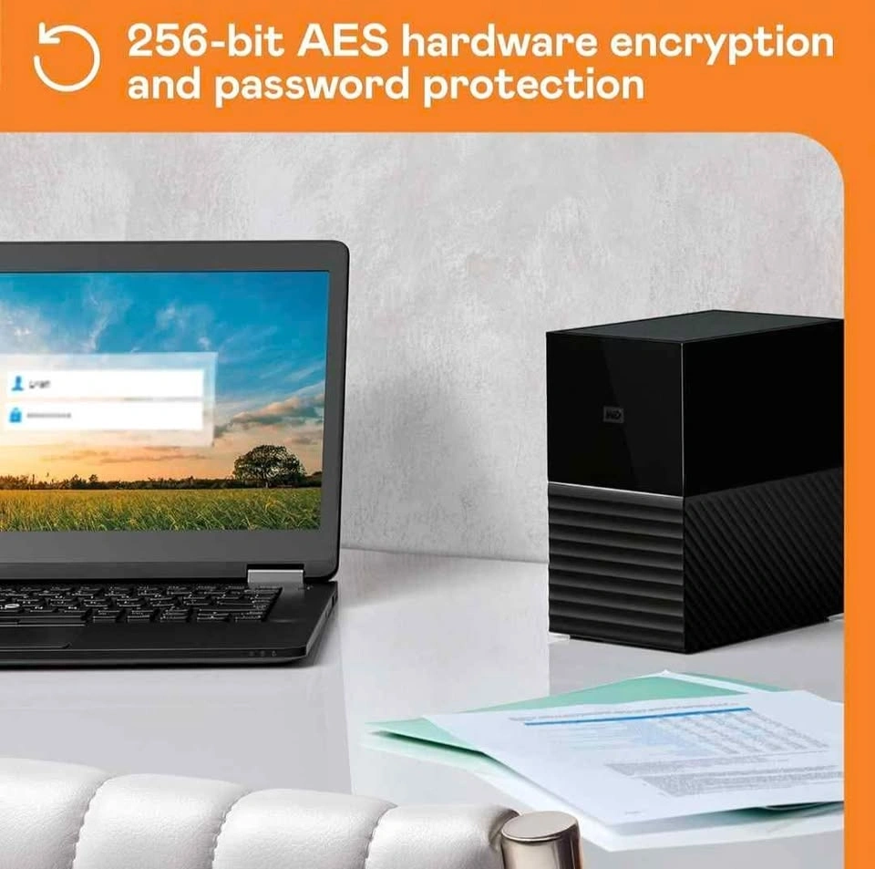 Key Features: 16TB total capacity (2x 8TB drives), RAID-0 configured for maximum speed, can be switched to RAID-1 (mirroring for redundancy), USB 3.1 Gen 1 (USB 3.0 compatible), 2x USB 3.0 hub ports, 256-bit AES hardware encryption, built-in cooling for reliable long-term use.