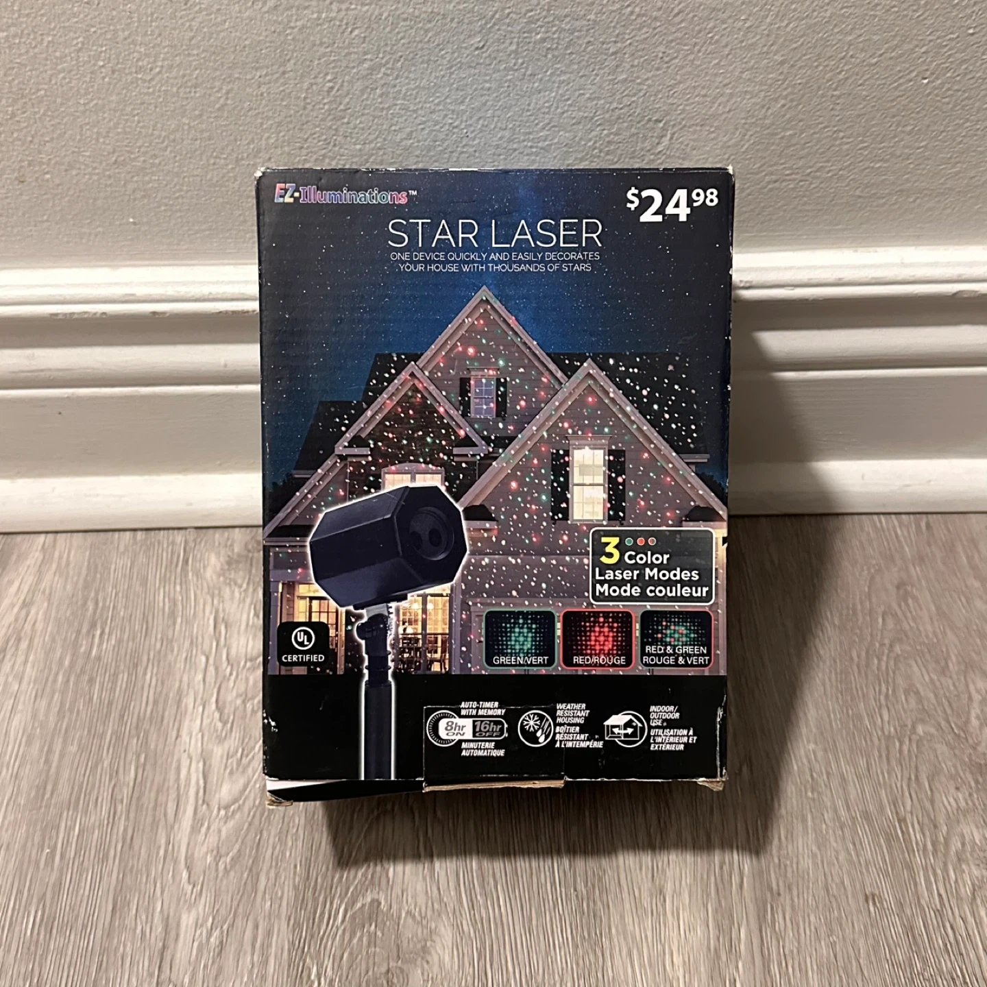 This EZ-Illuminations Star Laser Projector creates thousands of stars with green and red light modes. It's weather-resistant for indoor or outdoor use and includes an 8hr/16hr timer. Perfect for decorating your house quickly with a festive light display!