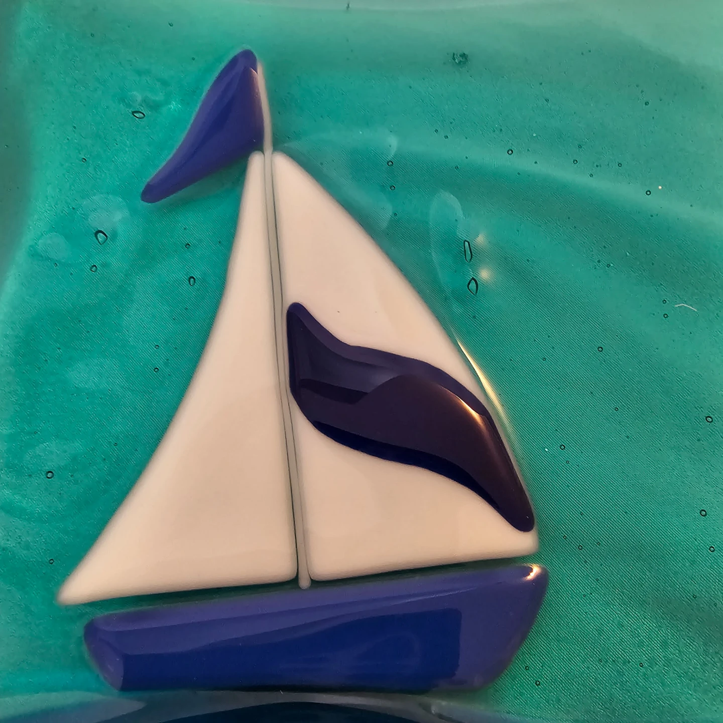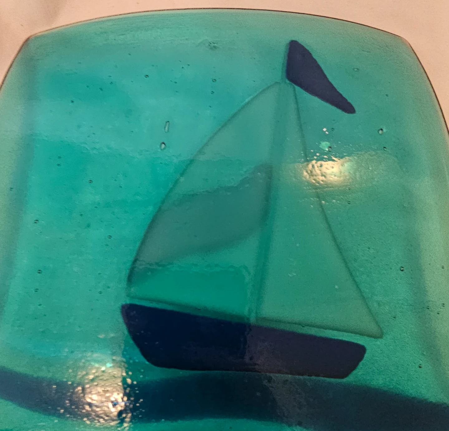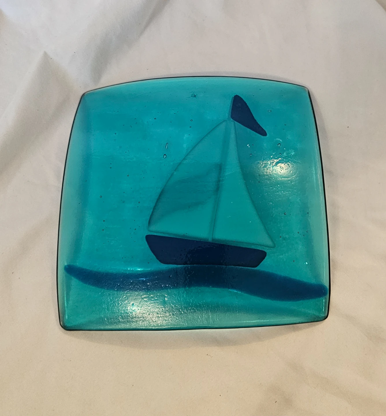 This Blue and White Nautical Boat Glass Decorative Plate is Brand New and never used.
