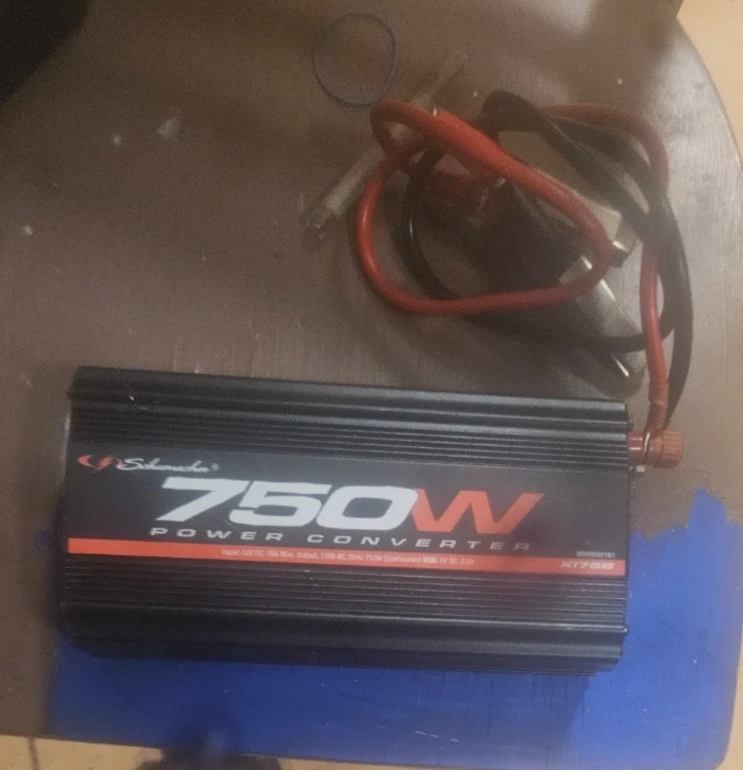Selling a Schumacher 750W Power Converter. It appears to be in good condition and includes the necessary cables. Great for converting power for various devices!