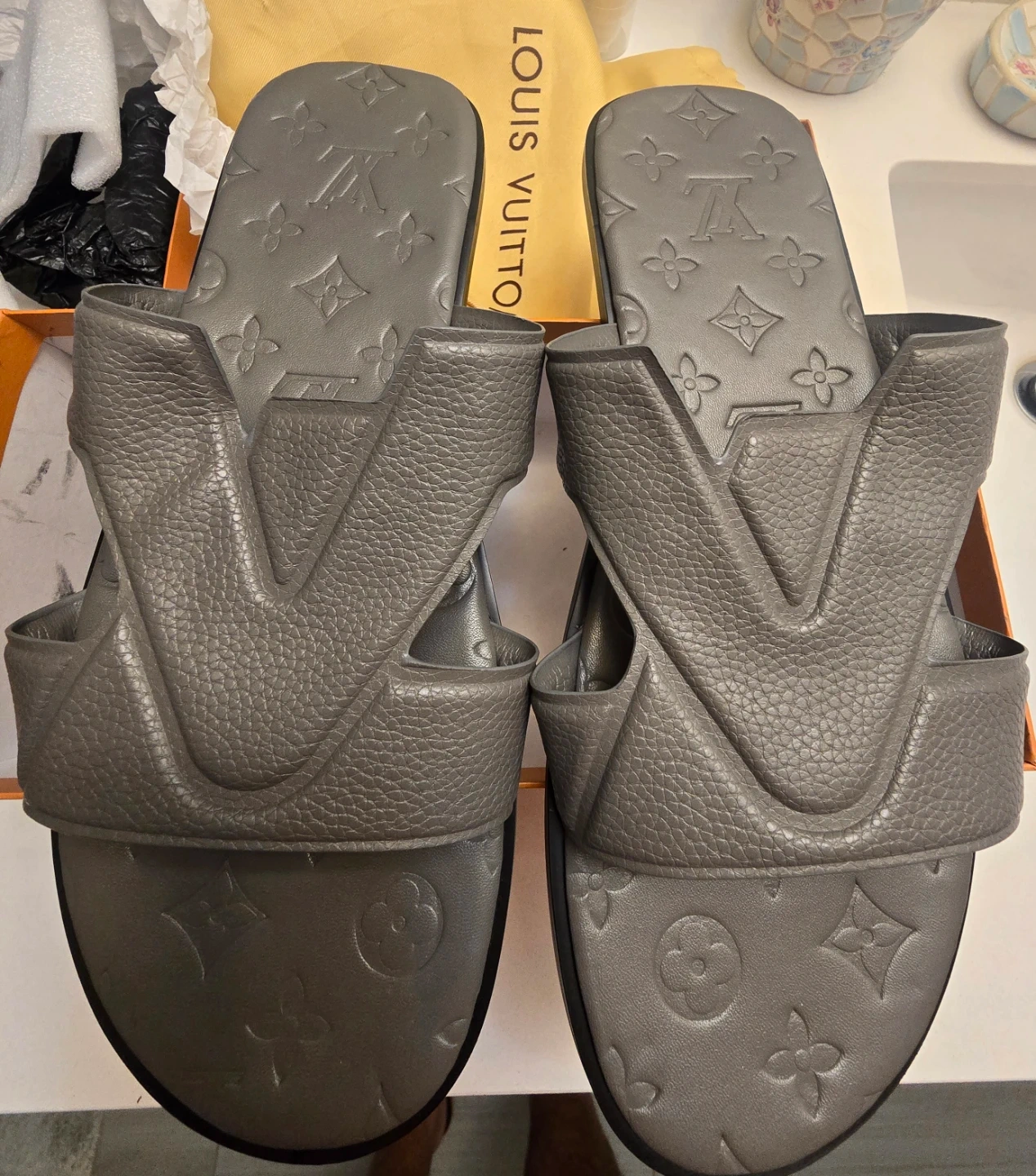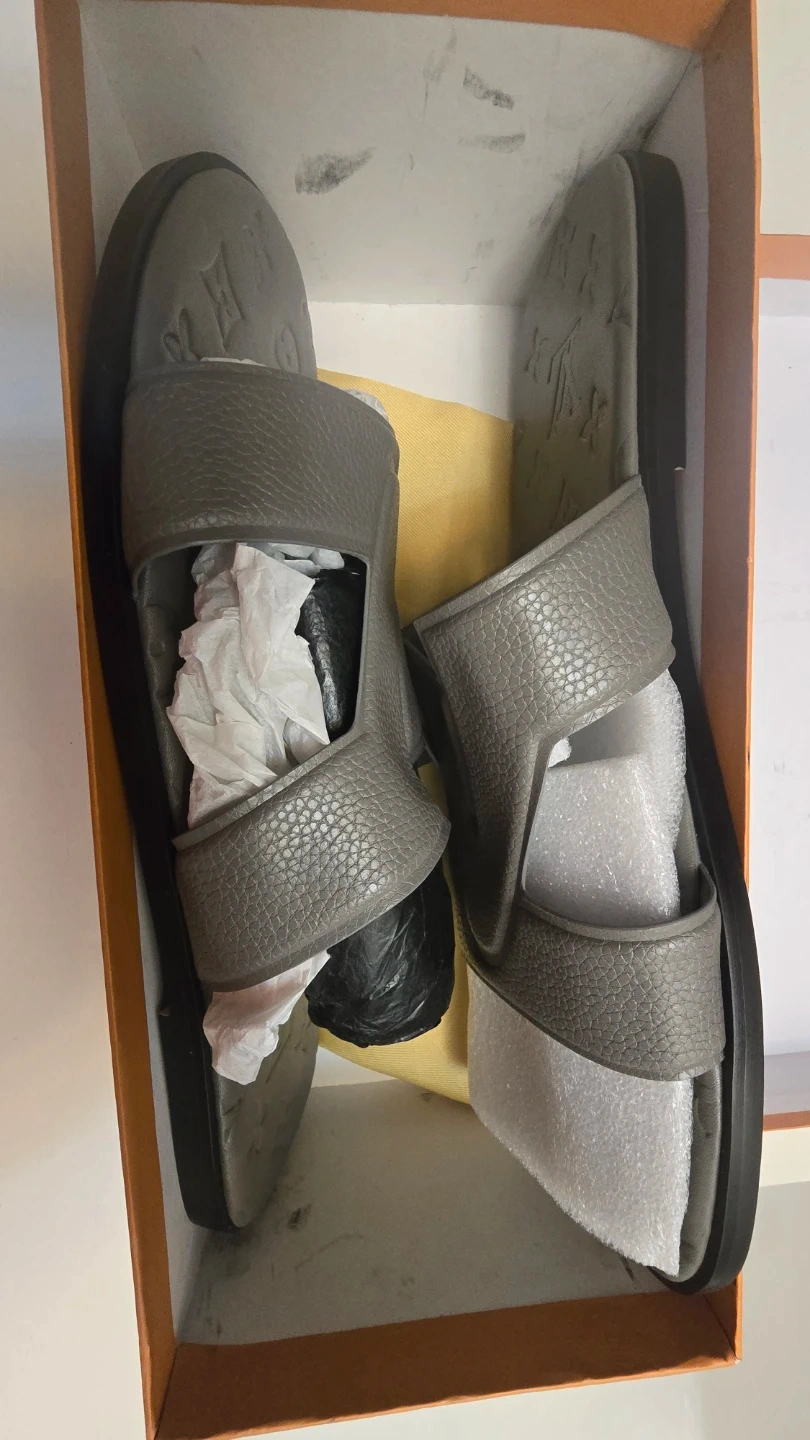 Authentic Louis Vuitton men's slide sandals in grey. Size 44.,(fits 43 too).