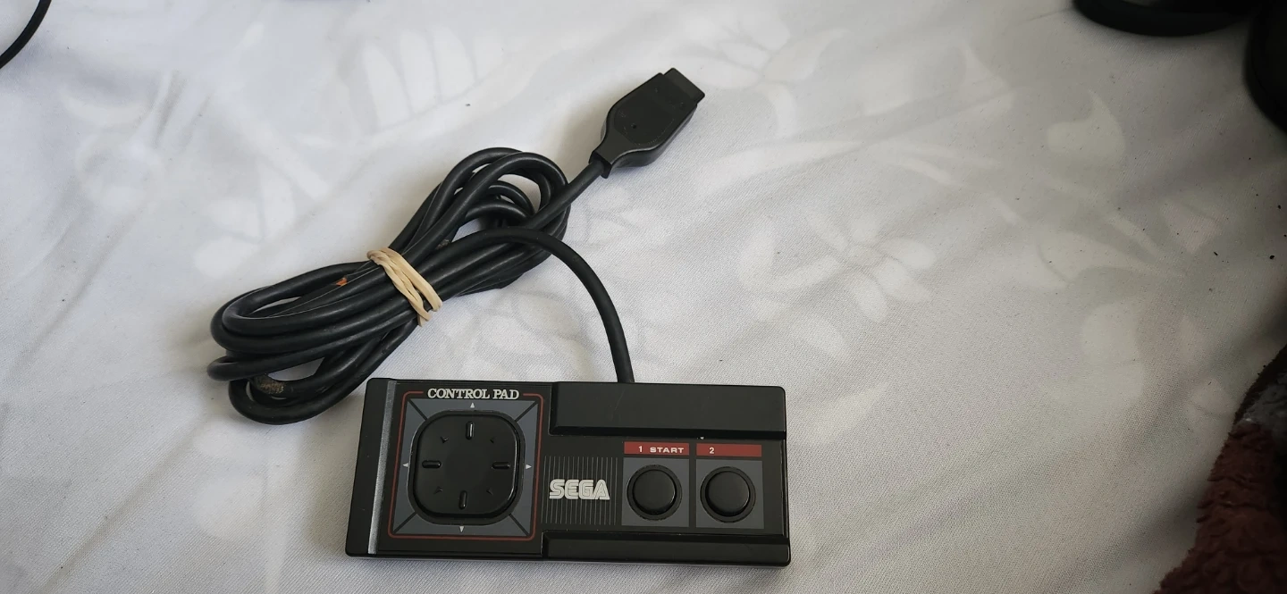 This is a Sega Control Pad, model number 3020. It features a directional pad and two action buttons labeled 1 and 2. This controller is for gaming.