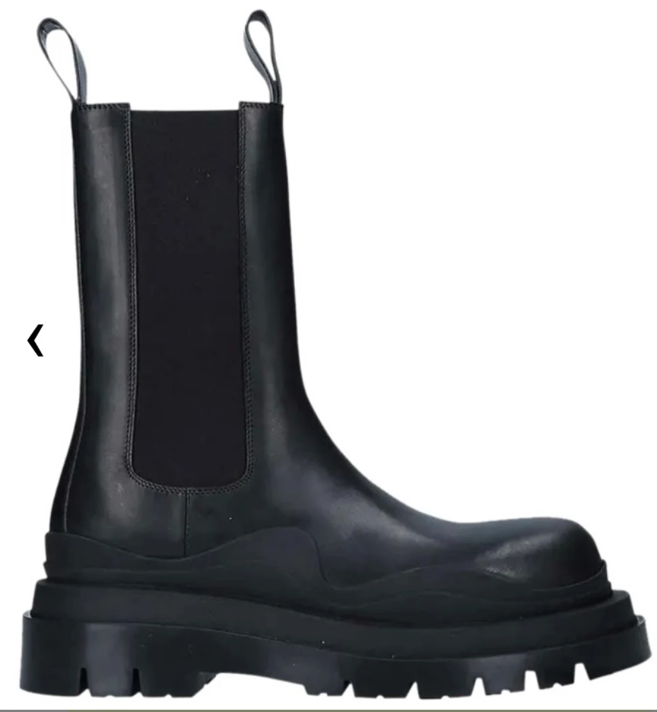 Bottega Veneta Tire Boots for men in black. These are a men's size 12. They feature a durable rubber sole and elastic side panels. Brand new in box. Retails for $1450 USD. Over $2000 CAN