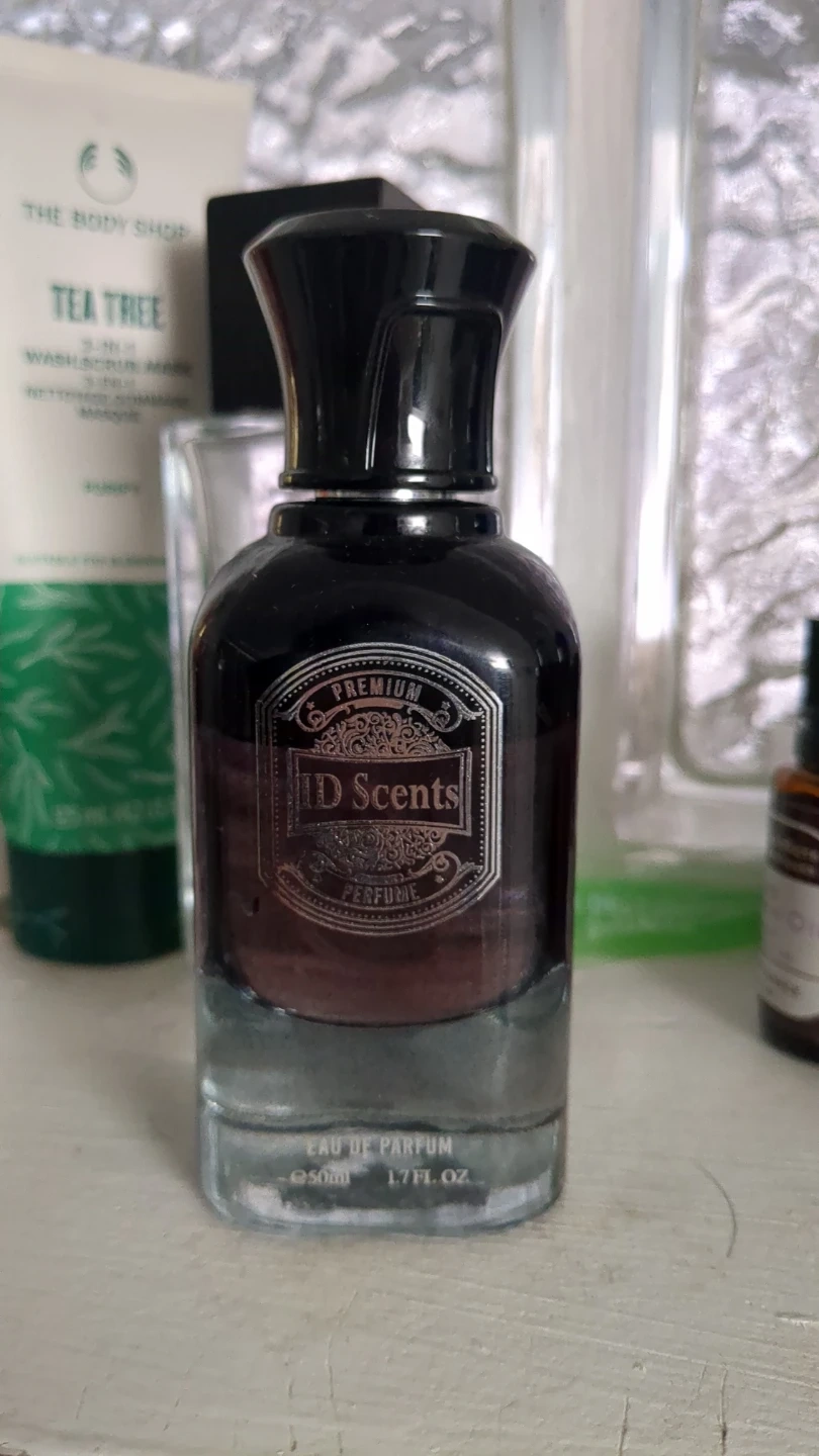 Selling a bottle of ID Scents Premium perfume. It's a stylish bottle with a dark, mysterious vibe. The bottle contains 50ml of Eau de Parfum.