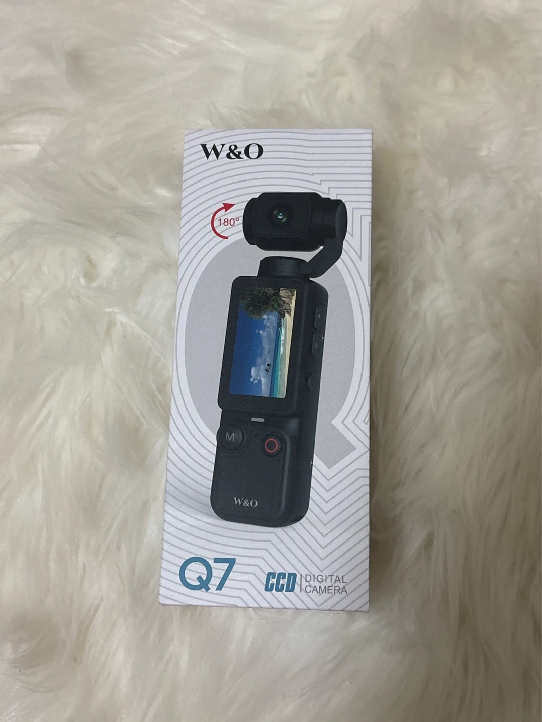 This W&O Q7 digital camera comes in its original box. It's a compact gimbal camera with a built-in screen. Perfect for capturing steady video on the go!