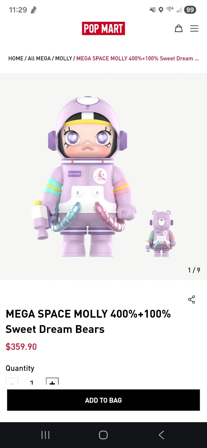 Selling a POP MART MEGA SPACE MOLLY 400%+100% Sweet Dream Bears figure. The original price is $359.90+tax