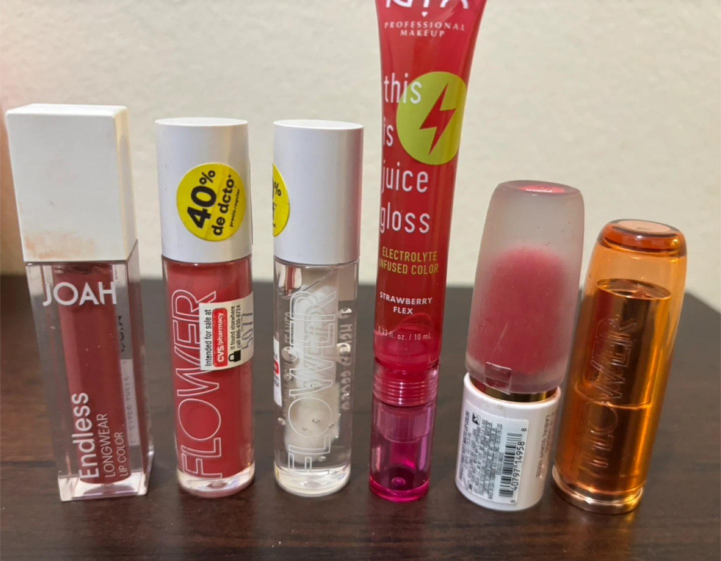 This lot includes a variety of lip products. You'll find a NYX This Is Juice Gloss in Strawberry Flex and a JOAH Endless Longwear Lip Color. Also included are two Flower Beauty lip glosses and a Wet n Wild lipstick. These are intended for cosmetic use.