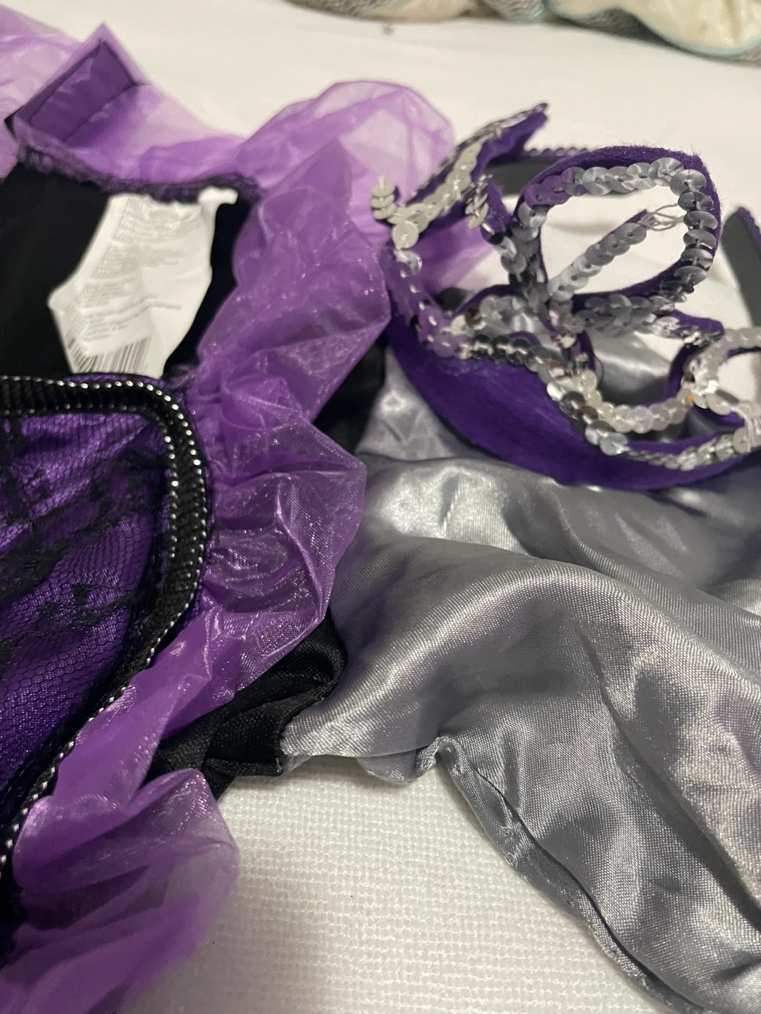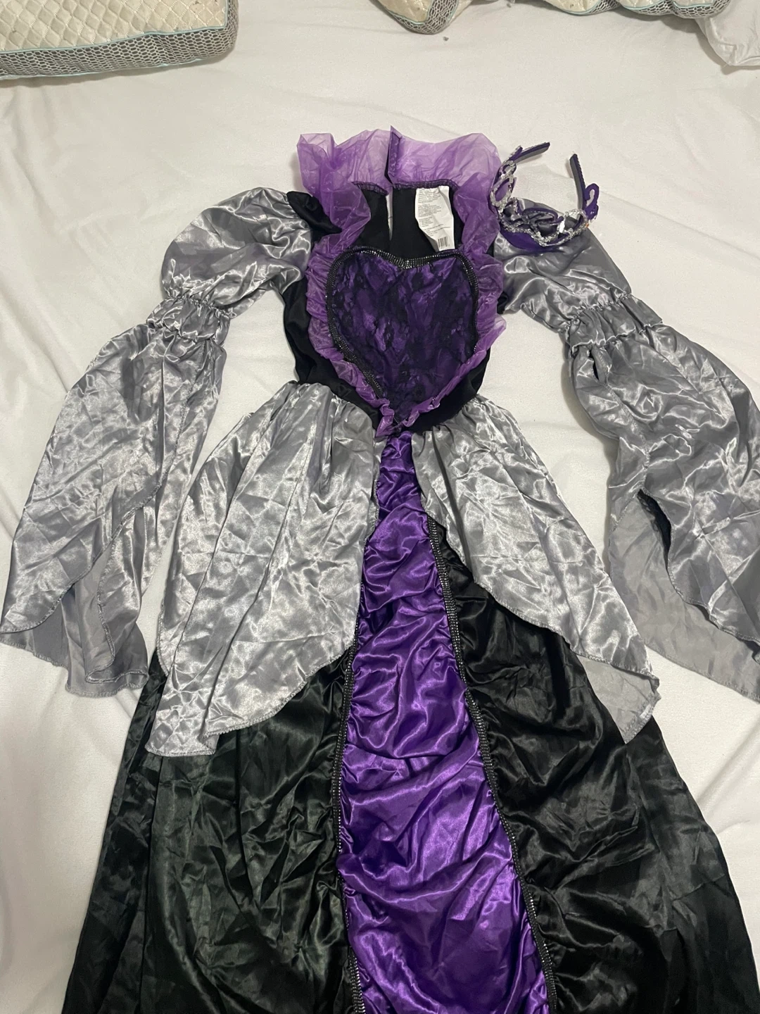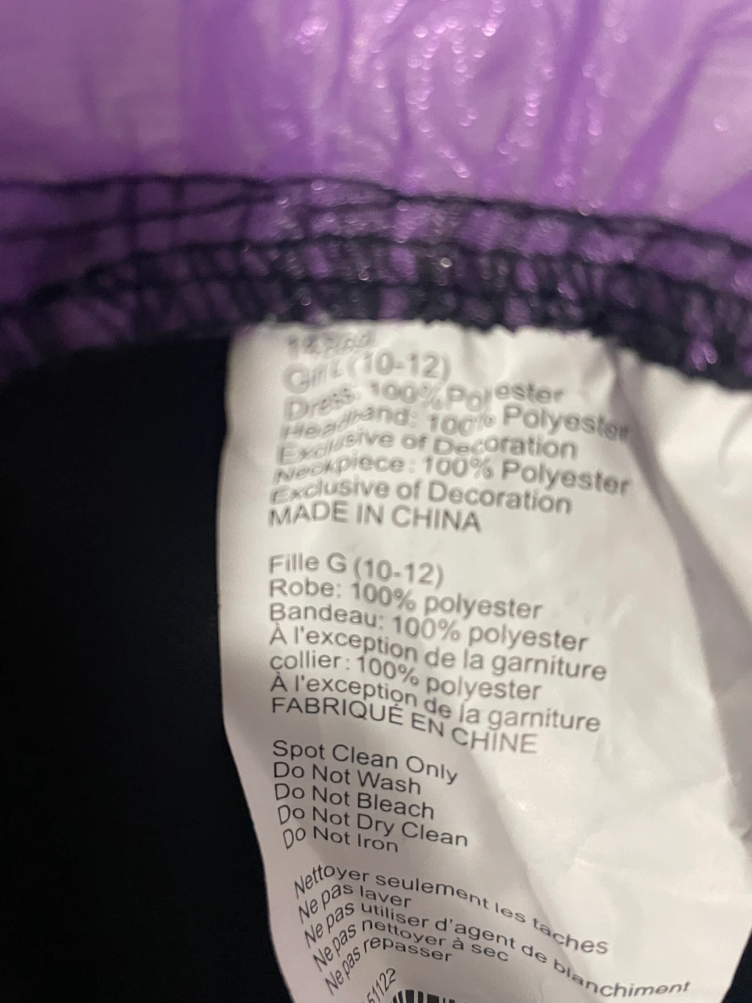 Selling a girl's costume, size 10-12. It's made of 100% polyester, exclusive of decoration. Includes a dress, headband. Used once size kids large