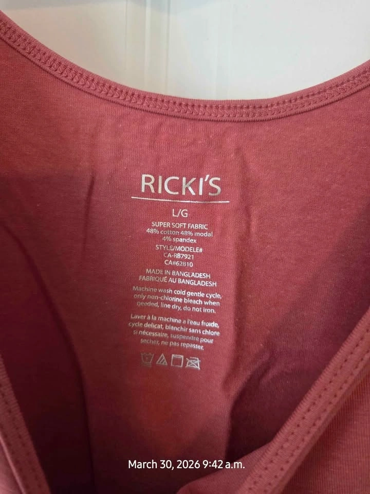 Buy & SellNew with Tags Ricki's Pink Tank Top (L)New with Tags Ricki's Pink Tank Top (L)$15Super soft Ricki's tank top. New with tags. Dusty rose pink color. Size large. Fabric is 48% cotton, 48% modal, 4% spandex.WHERE TO MEETGeorgetown Marketplace MallView MapSELLERLinaGeorgetown100 reviews0 chats·0 favorites·0 viewsSEND CHAT TO SELLERHi Lina! I’m interested in your listing.Hi Lina! I’m interested in your listing.Get the Karrot app to chatSign In to chat