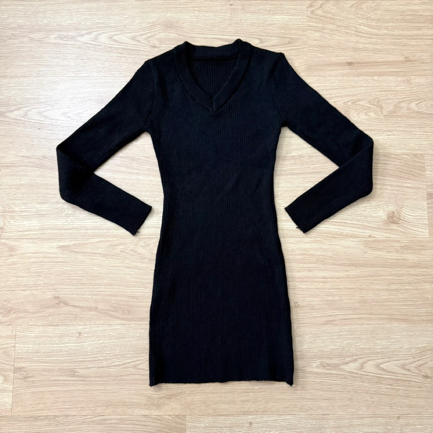 NEW Black V-neck Knit Long Sleeve Bodycon Mini Sweater Dress