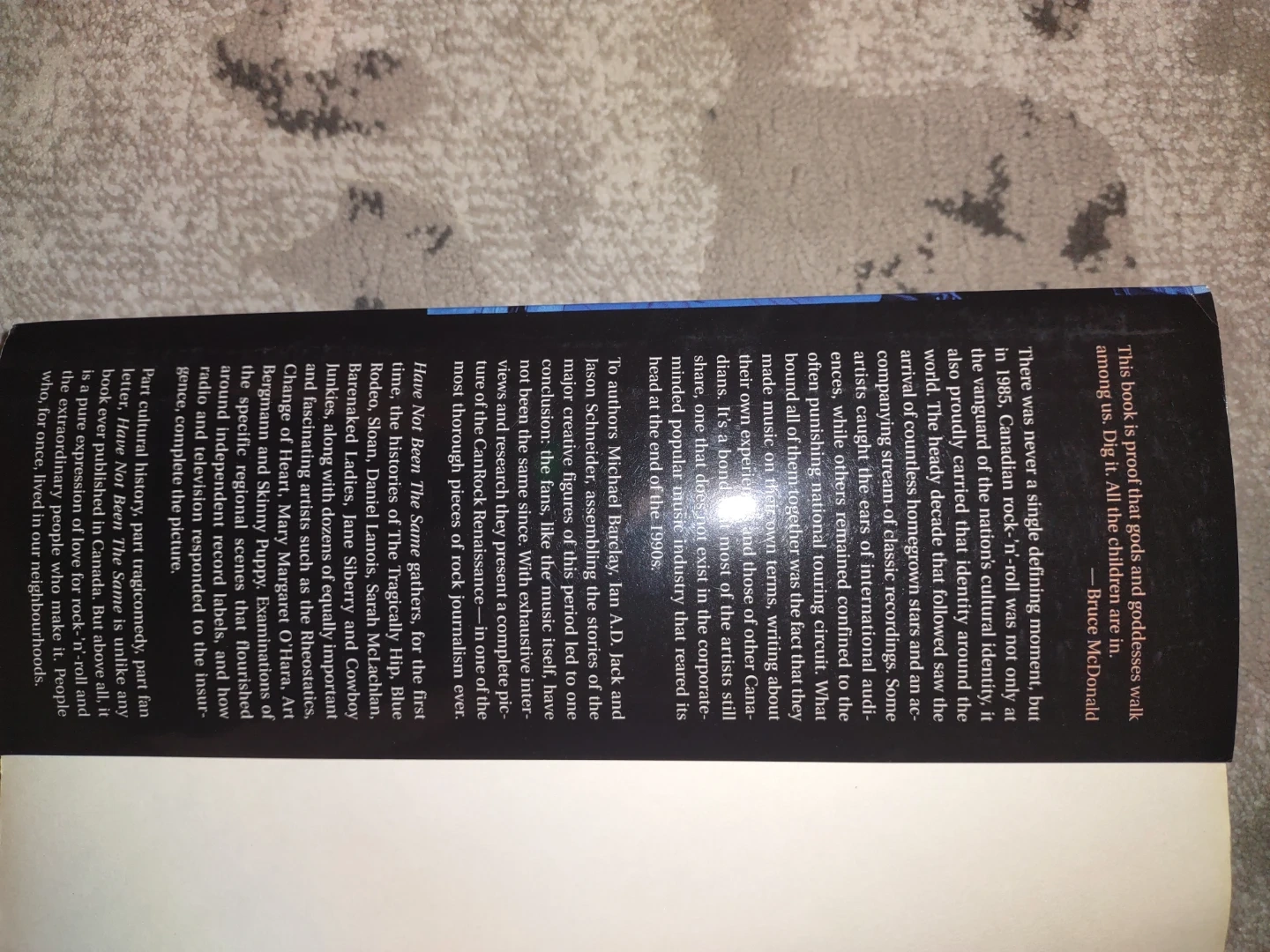 This book explores the CanRock Renaissance. It's written by Michael Barclay, Ian A.D. Jack, and Jason Schneider, with a foreword by Gordon Downie. It covers the history of Canadian rock music.
