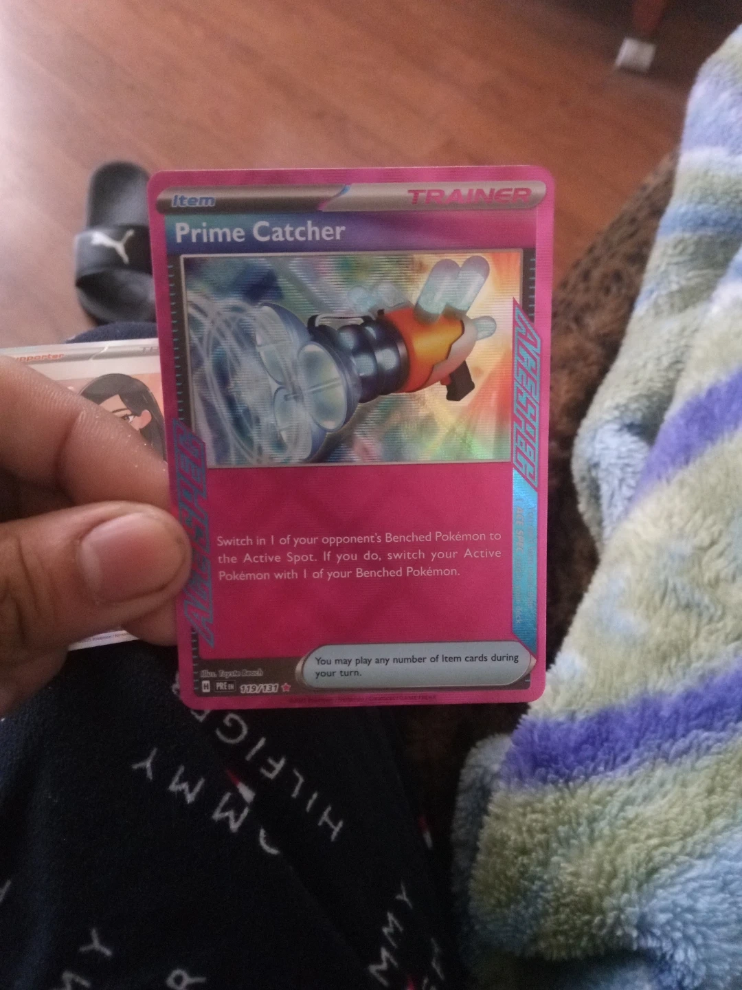 This is a Prime Catcher Trainer card from Pokemon. It's part of the ACE SPEC set and has the card number 119/131. The card allows you to switch one of your opponent's Benched Pokémon to the Active Spot.