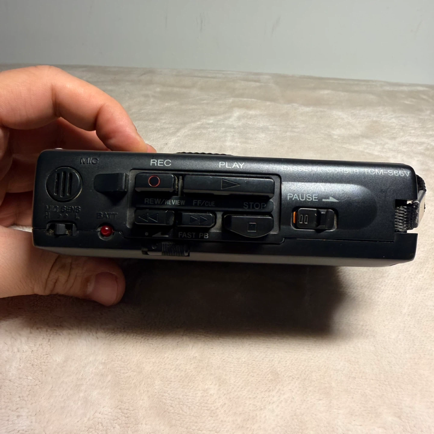 This is a Sony TCM-S68V cassette-corder voice recorder. It features a VOR (Voice Operated Recording) function. The unit has controls for play, record, Sony TCM-S66V Microcassette Recorder.