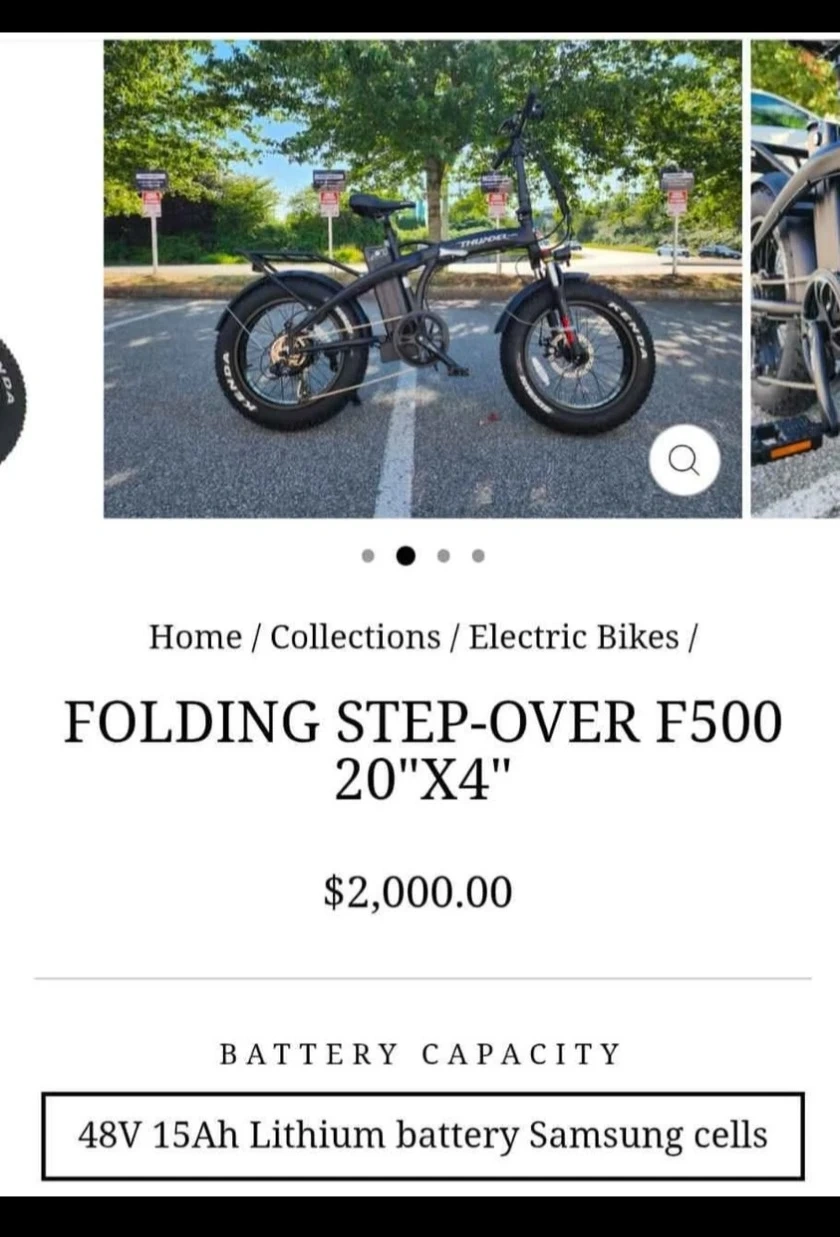 Buy & SellE-bikeE-bike$1,350Folding step-over F500 thunder 20"X4" e-bike (2 sets of keys ) Accessories included •Helmet •2 kinds of padlock •Phone holder •Side mirror •Air pump •Disc break replacement •Allen keysConditionGoodWHERE TO MEETCheck LocationView MapSELLERverifiedalvaE Richmond600 reviews0 chats·0 favorites·42 viewsSEND CHAT TO SELLERHi alva! I’m interested in your listing.Hi alva! I’m interested in your listing.Get the Karrot app to chatSign In to chat