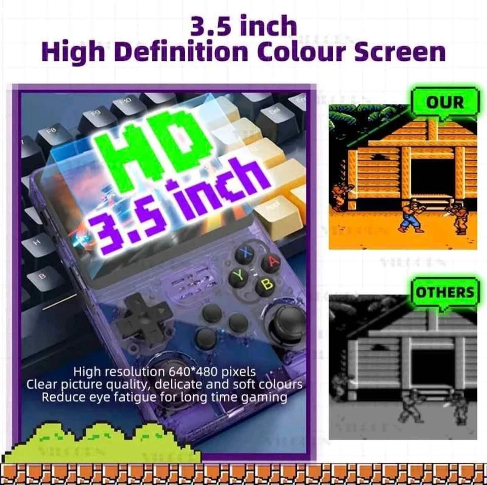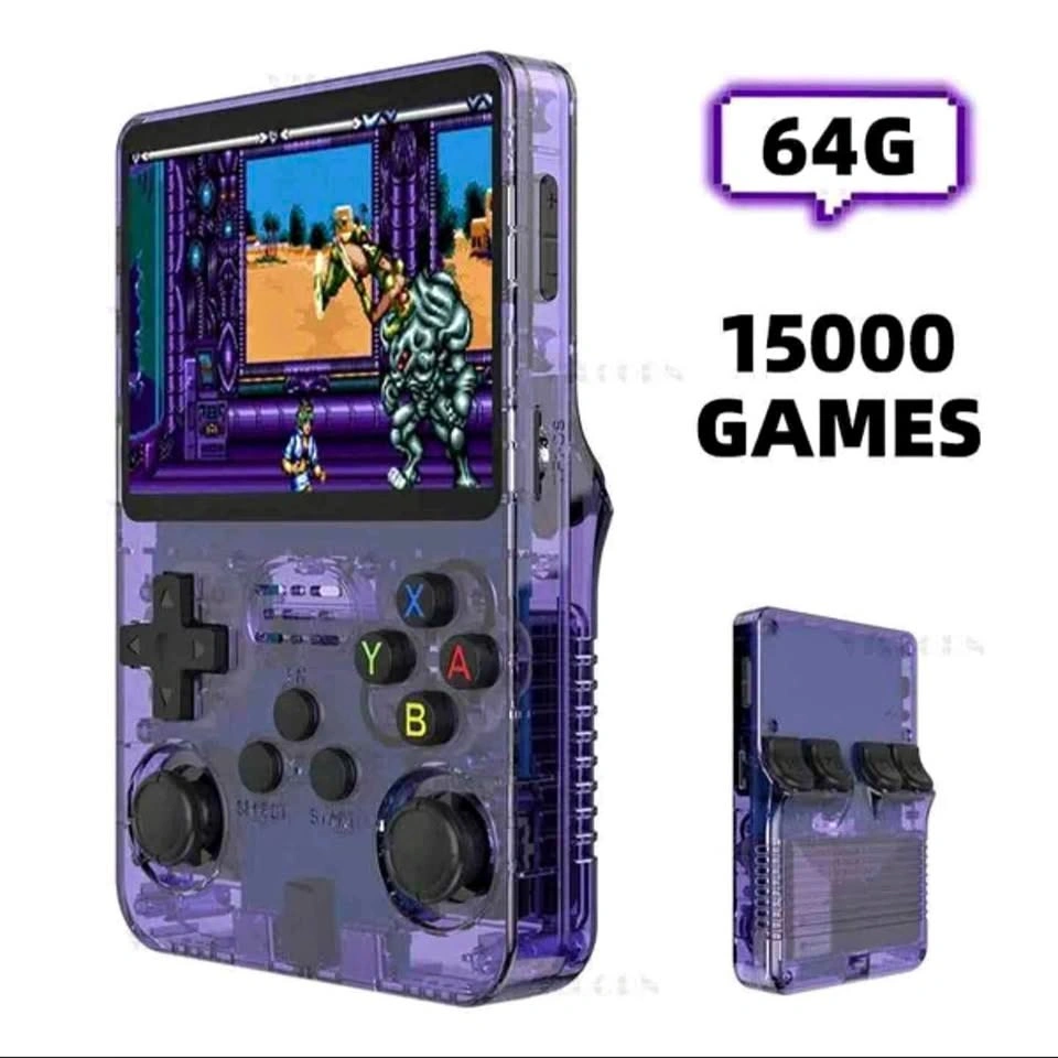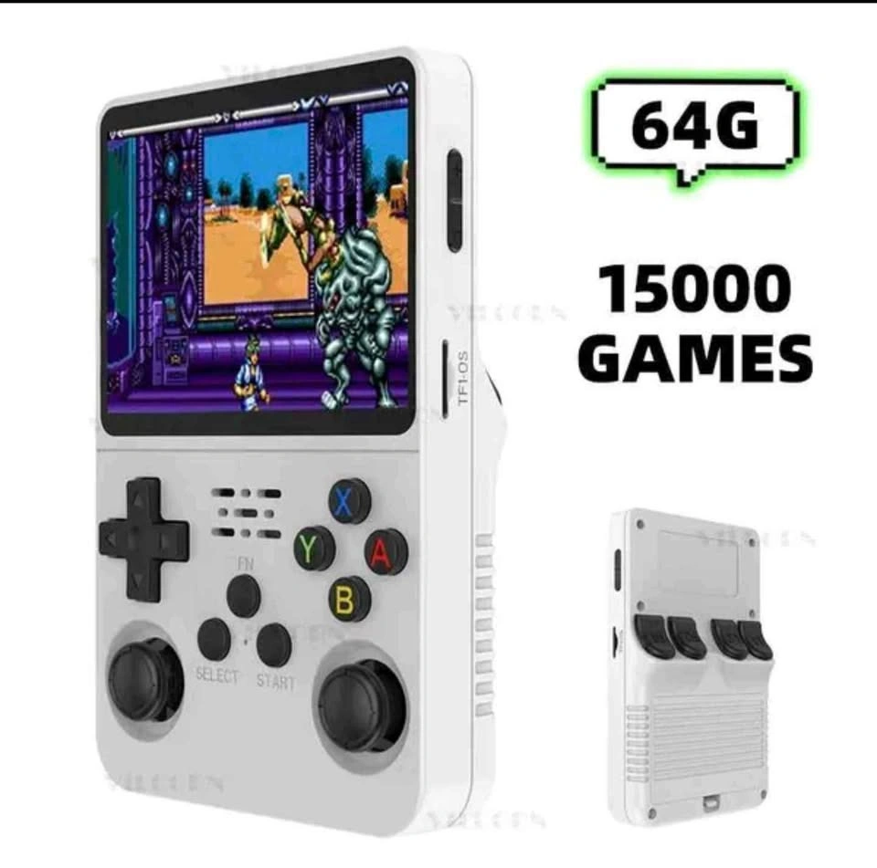 The R36S is a handheld retro gaming console that lets you relive your favorite classic games. It's perfect for video game enthusiasts who want a simple and fun console that's easy to carry. Key Features: High-Quality Screen: The 3.5-inch IPS screen has a resolution of 640x480, ensuring crisp graphics and vibrant colors. Storage and Games: Choose between 64GB and 128GB to store a ton of games. The console supports 26 emulators and up to 22,000 games. You have access to classics from MAME, GBA, N64, NES, SNES, PS1, and many more. Handling and Battery Life: The console has an ergonomic design with dual 3D joysticks and improved L/R buttons for a comfortable gaming experience. The 3000 mAh battery offers up to 5 hours of battery life. Portability: Its compact size allows you to take it anywhere. Ideal for commutes, trips, or just relaxing at home.