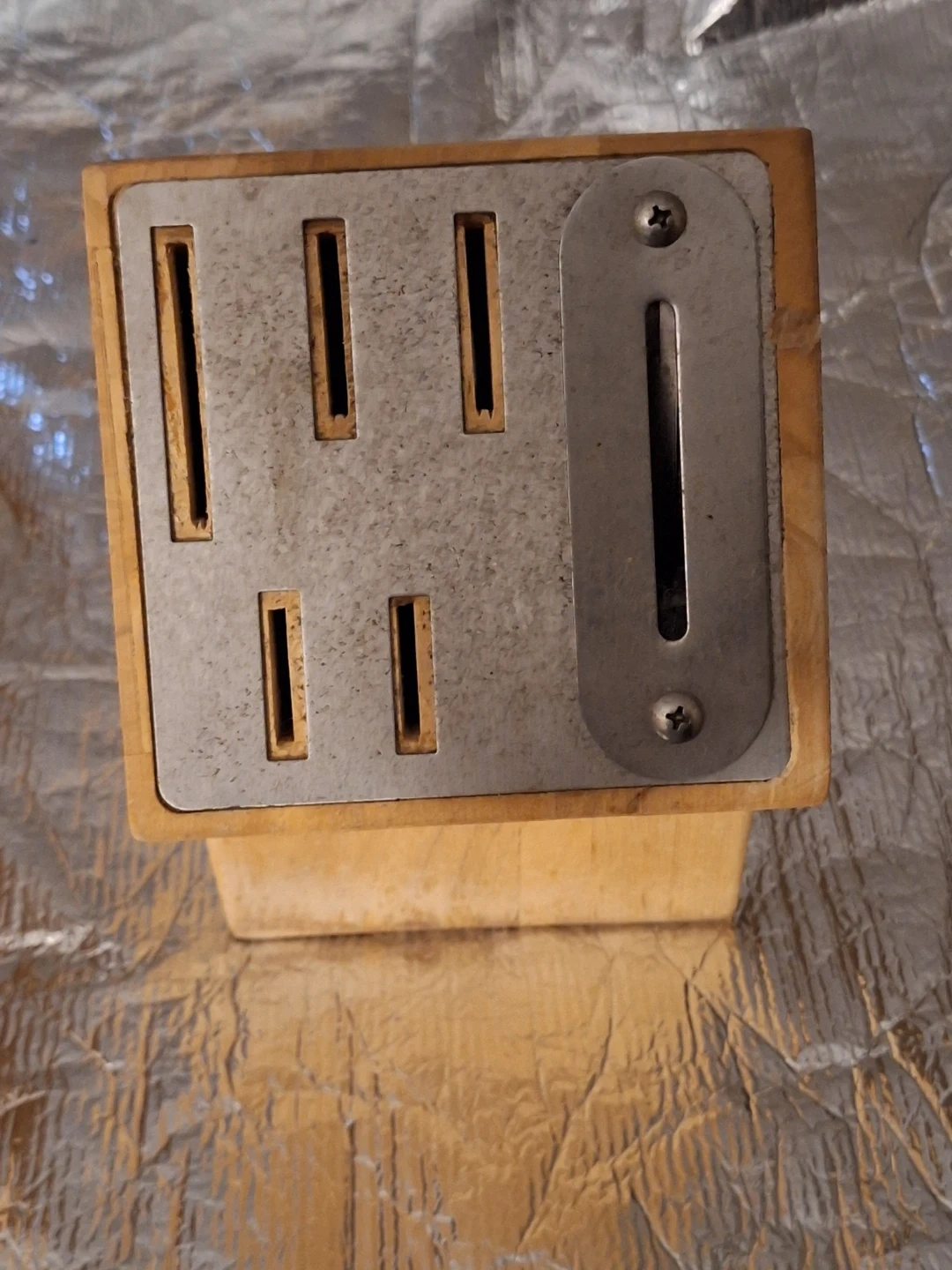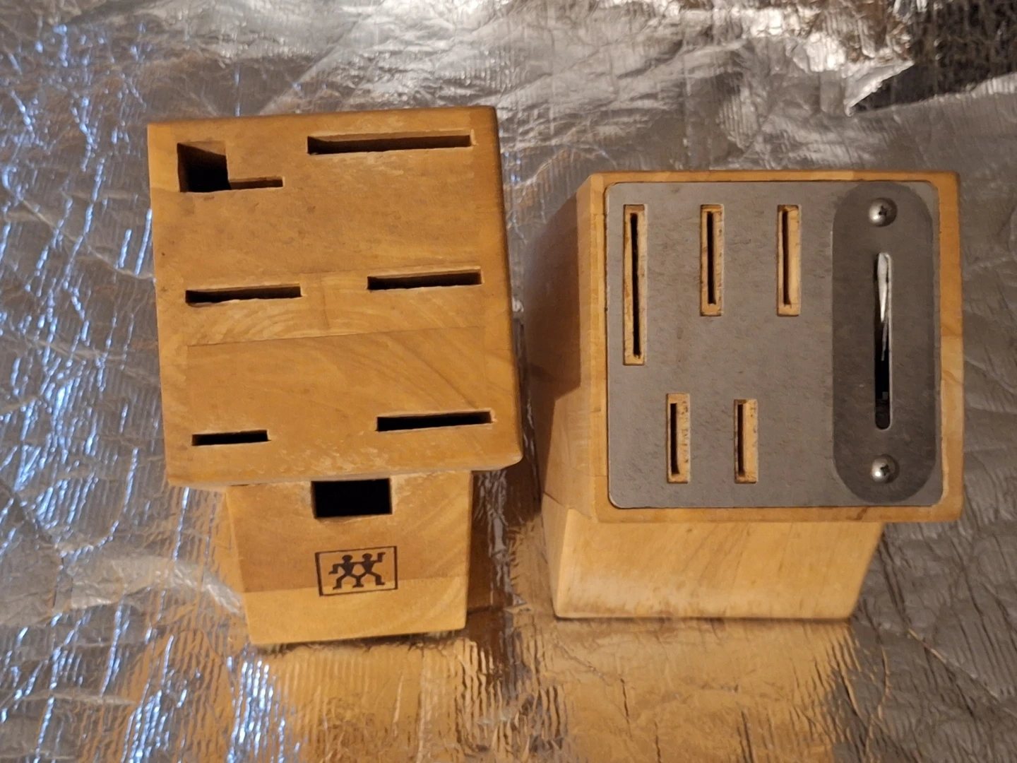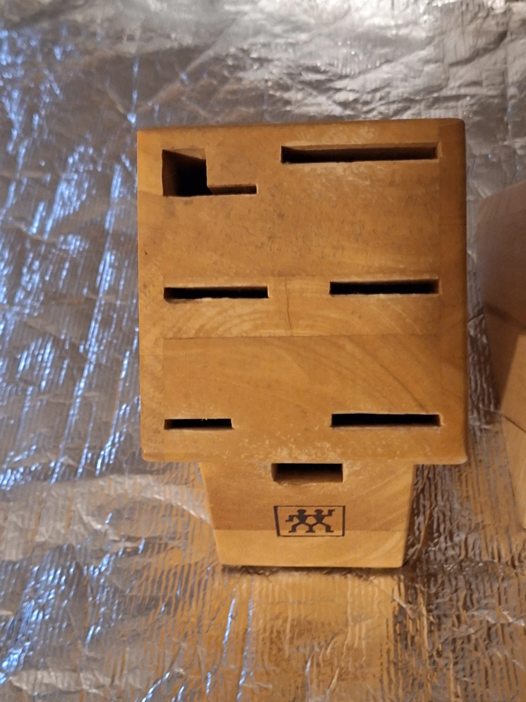 This is a ZWILLING J.A. Henckels wooden knife block. It has slots for multiple knives. The wood is light-coloured. A great way to store your kitchen knives safely!